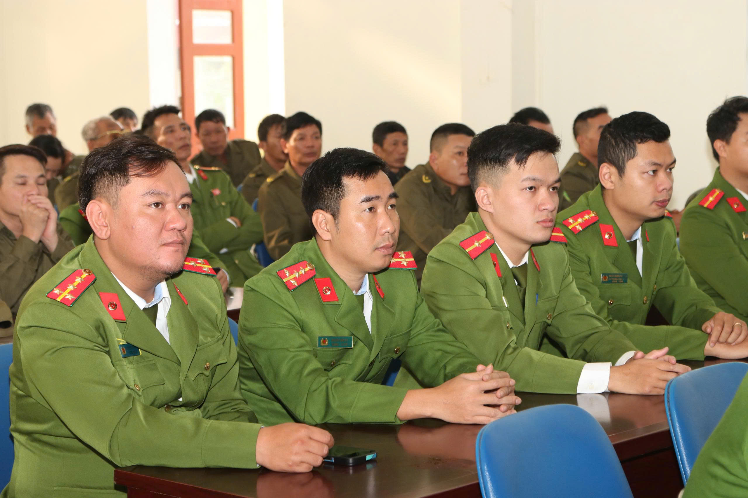 Cán bộ, chiến sĩ công an xã và an ninh cơ sở tham dự Đồng chí nhấn mạnh, đây là đợt cao điểm có ý nghĩa chính trị đặc biệt quan trọng, đòi hỏi sự vào cuộc quyết liệt, đồng bộ của cả hệ thống chính trị, các lực lượng chức năng và toàn dân. Đồng chí yêu cầu các ban, ngành, tổ chức đoàn thể, lực lượng vũ trang và nhân dân phối hợp chặt chẽ triển khai đồng bộ các biện pháp, nhất là phát huy phong trào “Toàn dân bảo vệ an ninh Tổ quốc”, nâng cao vai trò tự quản, tự phòng của khu dân cư, cơ quan, đơn vị; tăng cường tuyên truyền, giáo dục pháp luật, ngăn ngừa vi phạm pháp luật ngay từ cơ sở.