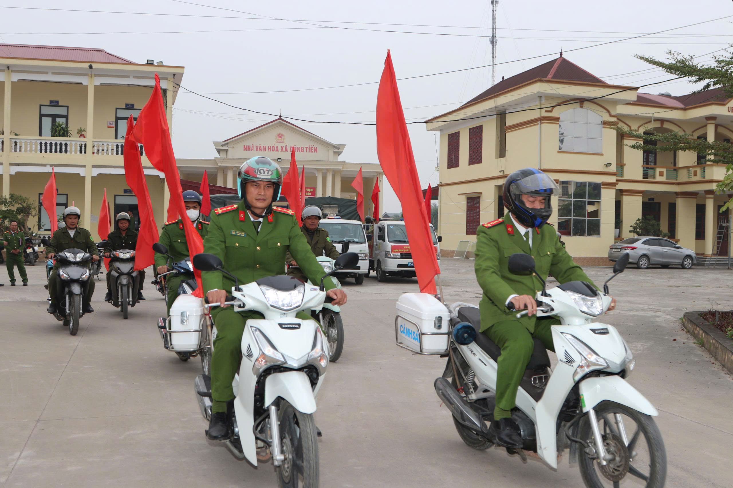 Tuần hành biểu dương lực lượng trên địa bàn xãNgay sau lễ phát động, các lực lượng chức năng tổ chức tuần hành biểu dương lực lượng và tuyên truyền lưu động trên các trục đường chính, khu dân cư, chợ, trường học… nhằm lan tỏa khí thế sôi nổi, tinh thần quyết tâm cao độ đến từng người dân, tạo sự đồng thuận, chung sức chung lòng thực hiện thắng lợi mục tiêu giữ vững ANTT, chào mừng Đại hội Đảng các cấp và các ngày lễ trọng đại của đất nước.