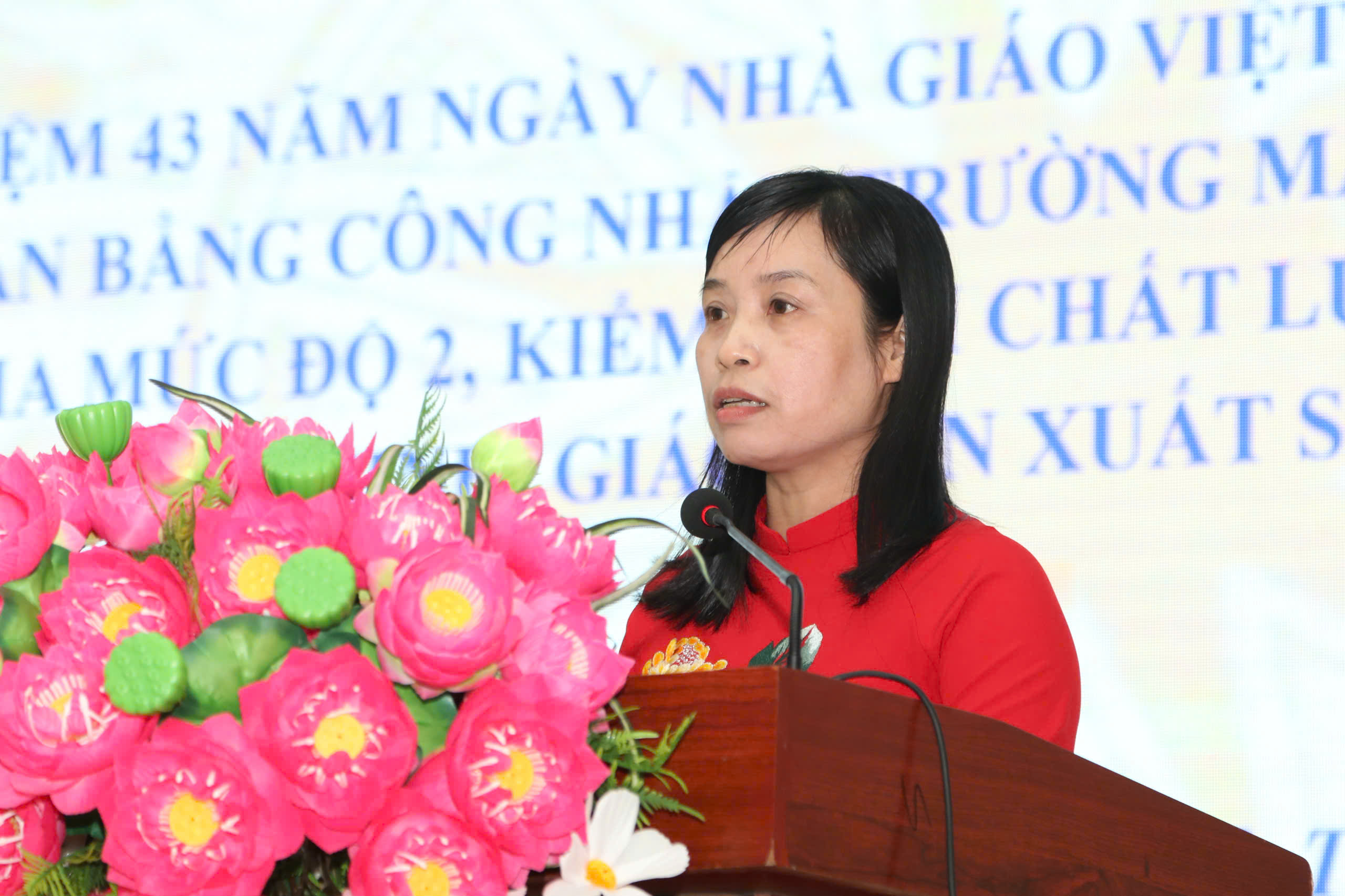 Đồng chí Nguyễn Thị Ngà- Trưởng phòng Văn hóa- xã hội đọc quyết định khen thưởng tại hội nghịNhân dịp này, UBND xã tặng Giấy khen cho 14 giáo viên và học sinh có thành tích xuất sắc; đồng thời biểu dương 33 giáo viên và 24 học sinh đạt thành tích cao trong các kỳ thi cấp huyện, cấp thành phố, tạo động lực để thầy và trò tiếp tục nỗ lực phấn đấu.