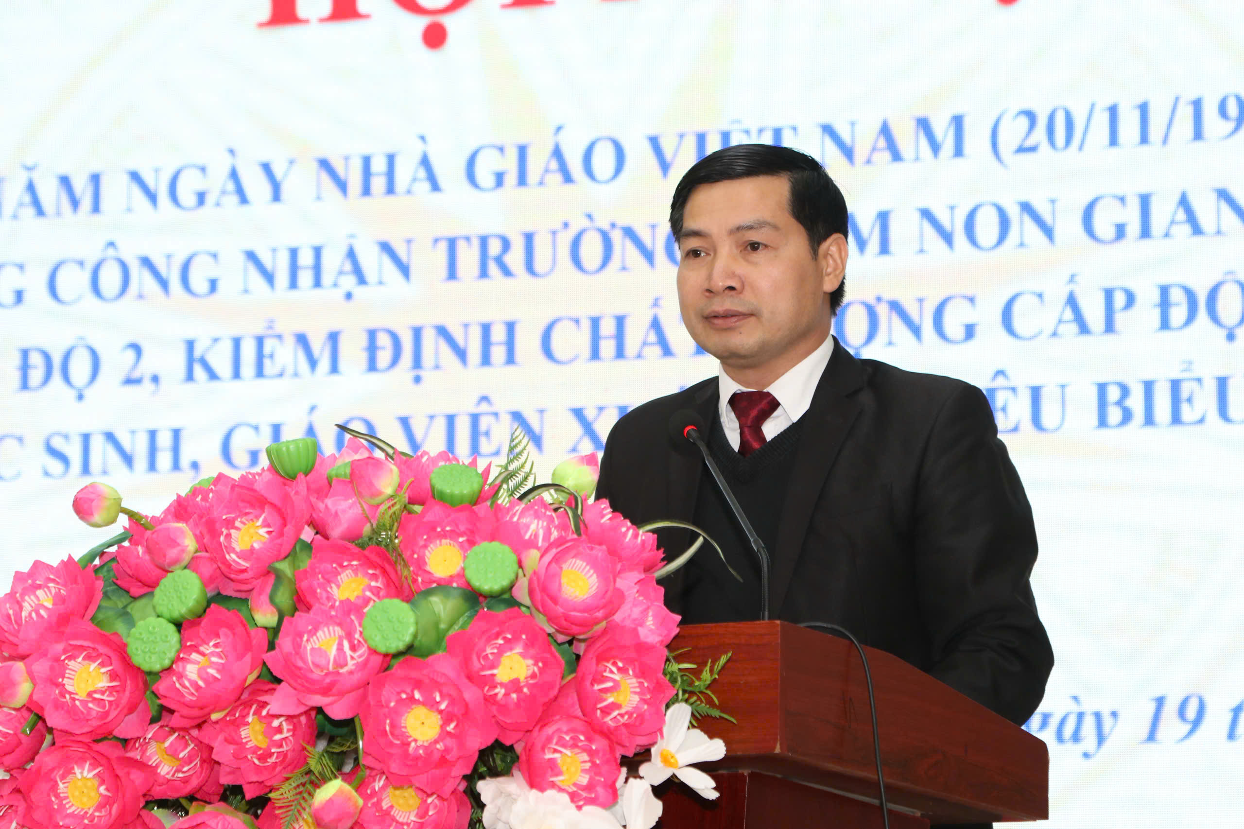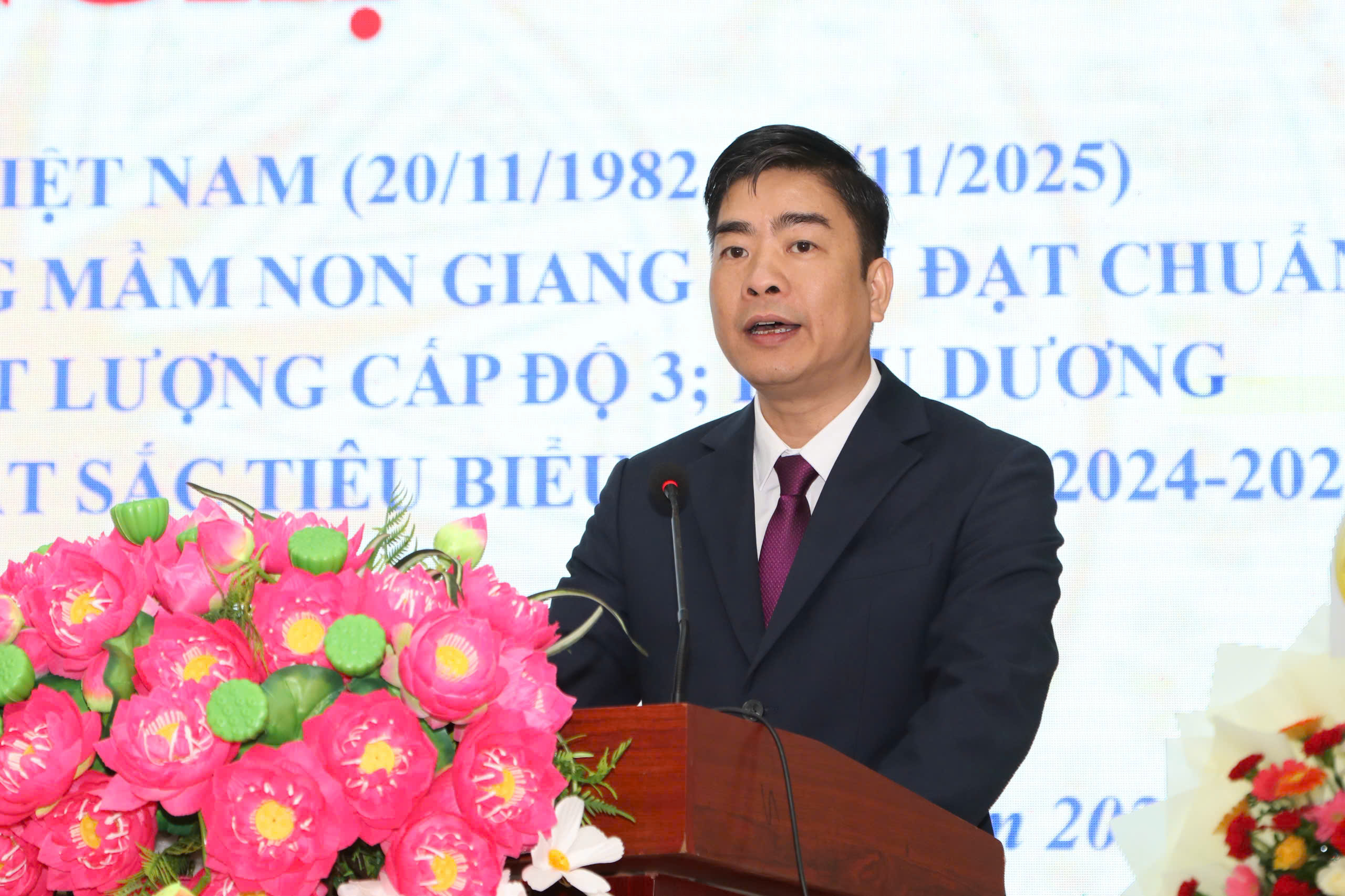 Đồng chí Đoàn Đức Giang- ủy viên BTV Đảng ủy- Chủ tịch Ủy ban MTTQ VN xã- Phó chủ tịch thưởng trực UBND xã trình bày diễn văn kỉ niệmNăm học 2024 – 2025, toàn xã có 9 trường học với 6.168 học sinh ở 166 lớp. Dù còn nhiều khó khăn về cơ sở vật chất, các trường vẫn đạt nhiều thành tích nổi bật: 355 học sinh đạt giải cấp huyện, 22 học sinh đạt giải cấp thành phố; 1 trường được công nhận Tập thể Lao động xuất sắc, 8 trường đạt Tập thể Lao động tiên tiến. Ngành giáo dục có 2 giáo viên đạt Chiến sĩ thi đua cấp thành phố, 10 giáo viên nhận Bằng khen của Chủ tịch UBND thành phố và 52 giáo viên đạt danh hiệu Chiến sĩ thi đua cơ sở.