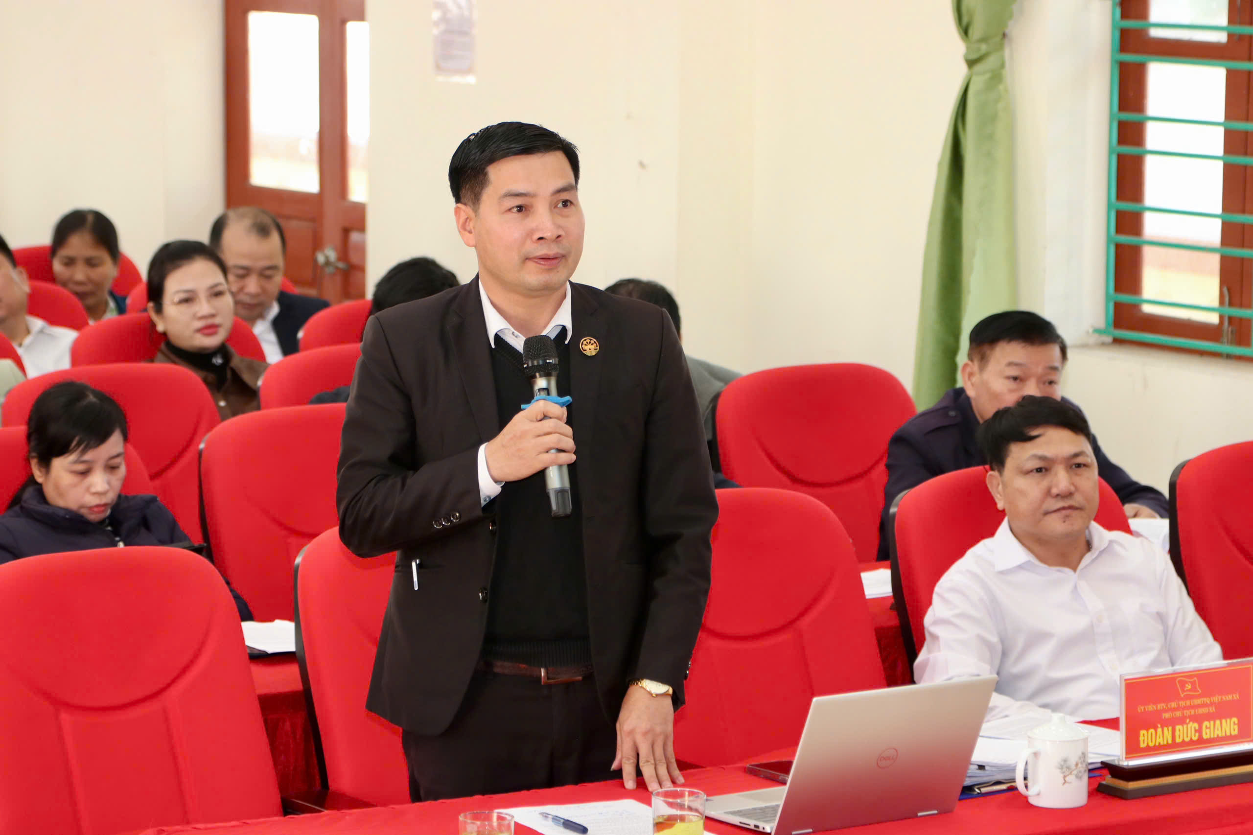 Đồng chí Đoàn Đức Giang- Ủy viên BTV Đảng ủy- Chủ tịch Ủy ban MTTQ Việt Nam - Phó Chủ tịch Thường trực UBND xã trả lời ý kiến cử tri