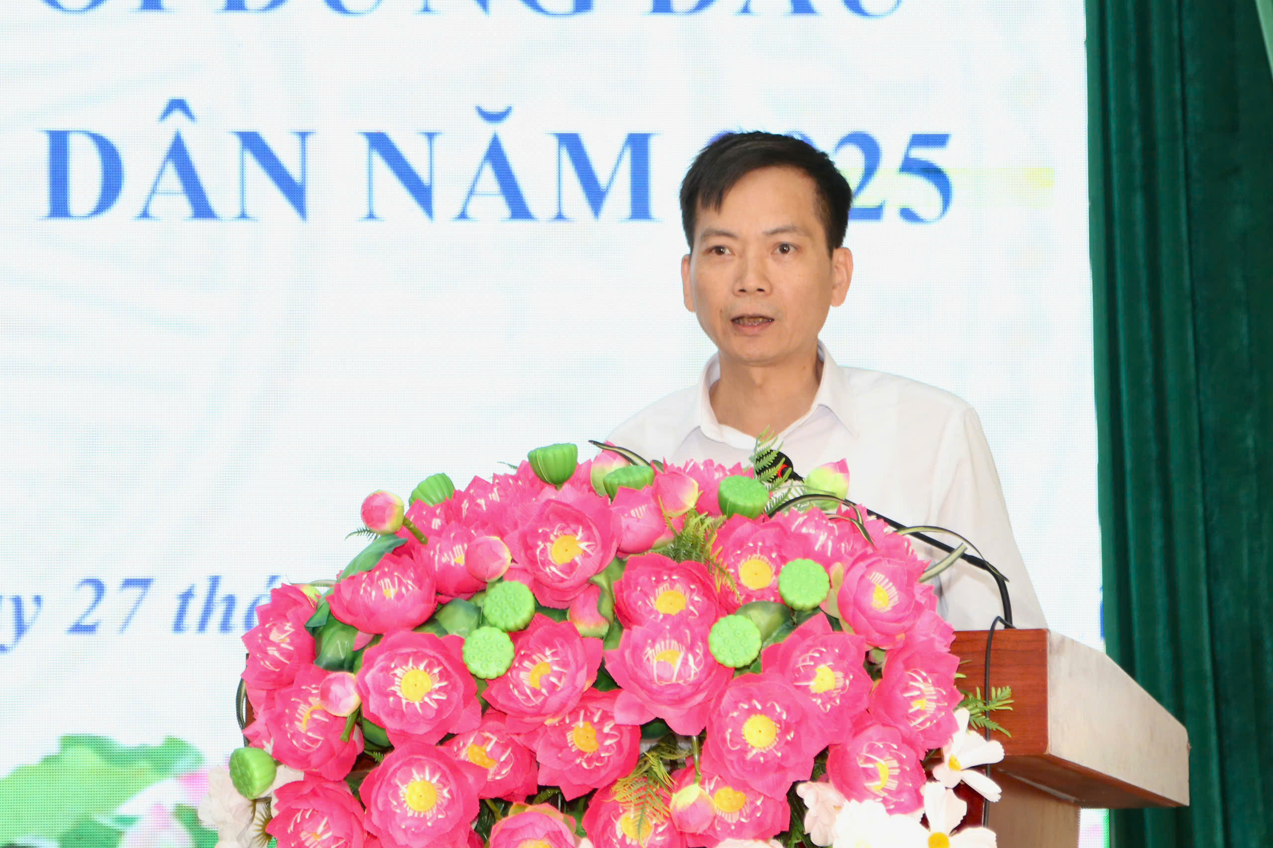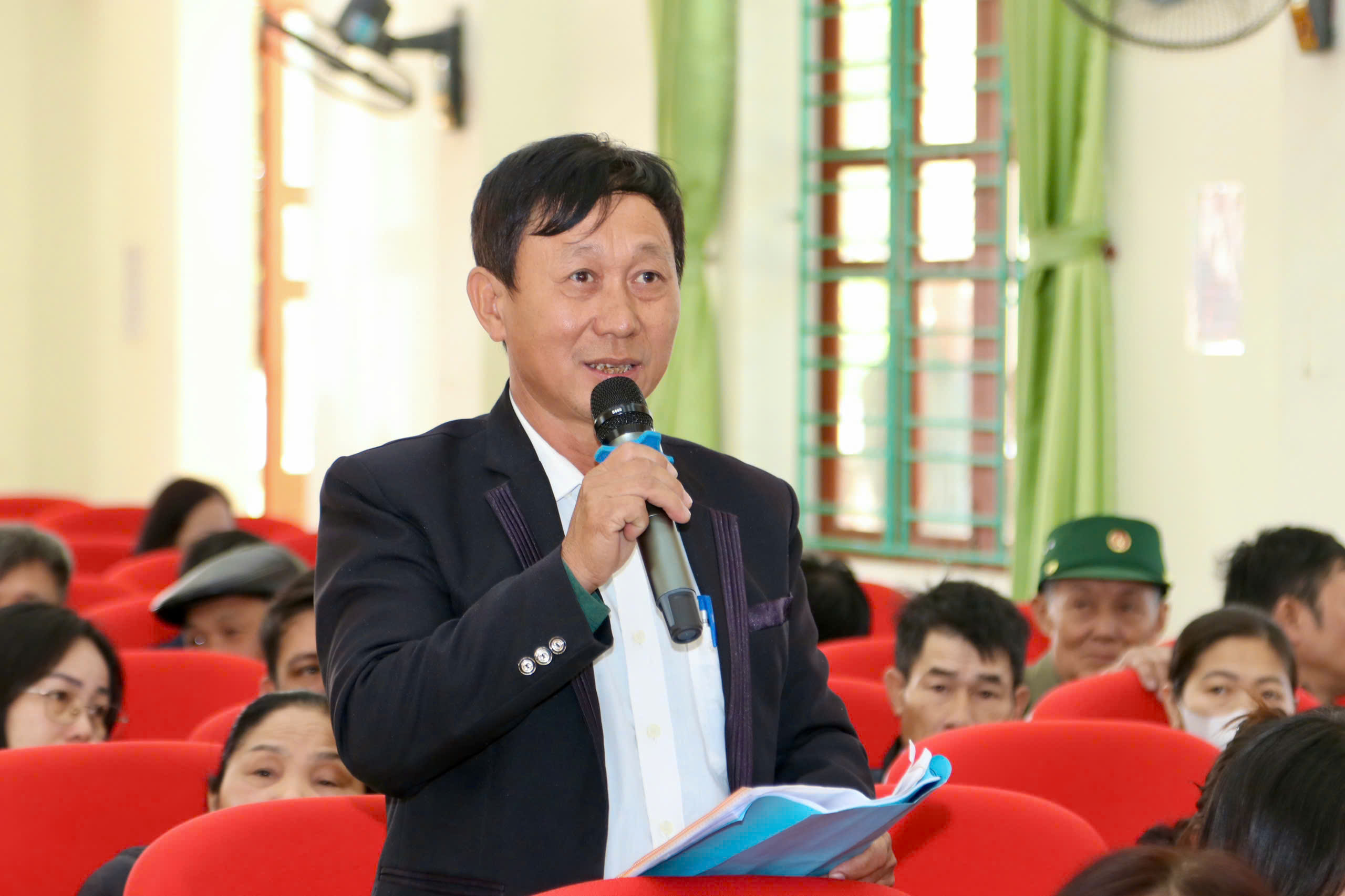 Phạm Đình Quý – Phó Bí thư Thường trực Đảng ủy xã phát biểuTại hội nghị, sau khi nghe đồng chí Phạm Đình Quý – Phó Bí thư Thường trực Đảng ủy xã thông tin khái quát về tình hình phát triển kinh tế – xã hội, quốc phòng – an ninh, công tác xây dựng Đảng, chính quyền; việc thực hiện mô hình chính quyền địa phương 2 cấp trong thời gian qua và nhiệm vụ trọng tâm những tháng cuối năm 2025, trên tinh thần dân chủ, thẳng thắn, trách nhiệm, đã có 10 đại biểu đặt câu hỏi với 33 kiến nghị, đề xuất. Các ý kiến tập trung vào các lĩnh vực: quản lý đất đai, xây dựng nông thôn mới, môi trường, giải phóng mặt bằng, nông nghiệp và phát triển nông thôn; công nghiệp, thương mại, dịch vụ, giao thông; quốc phòng – an ninh.