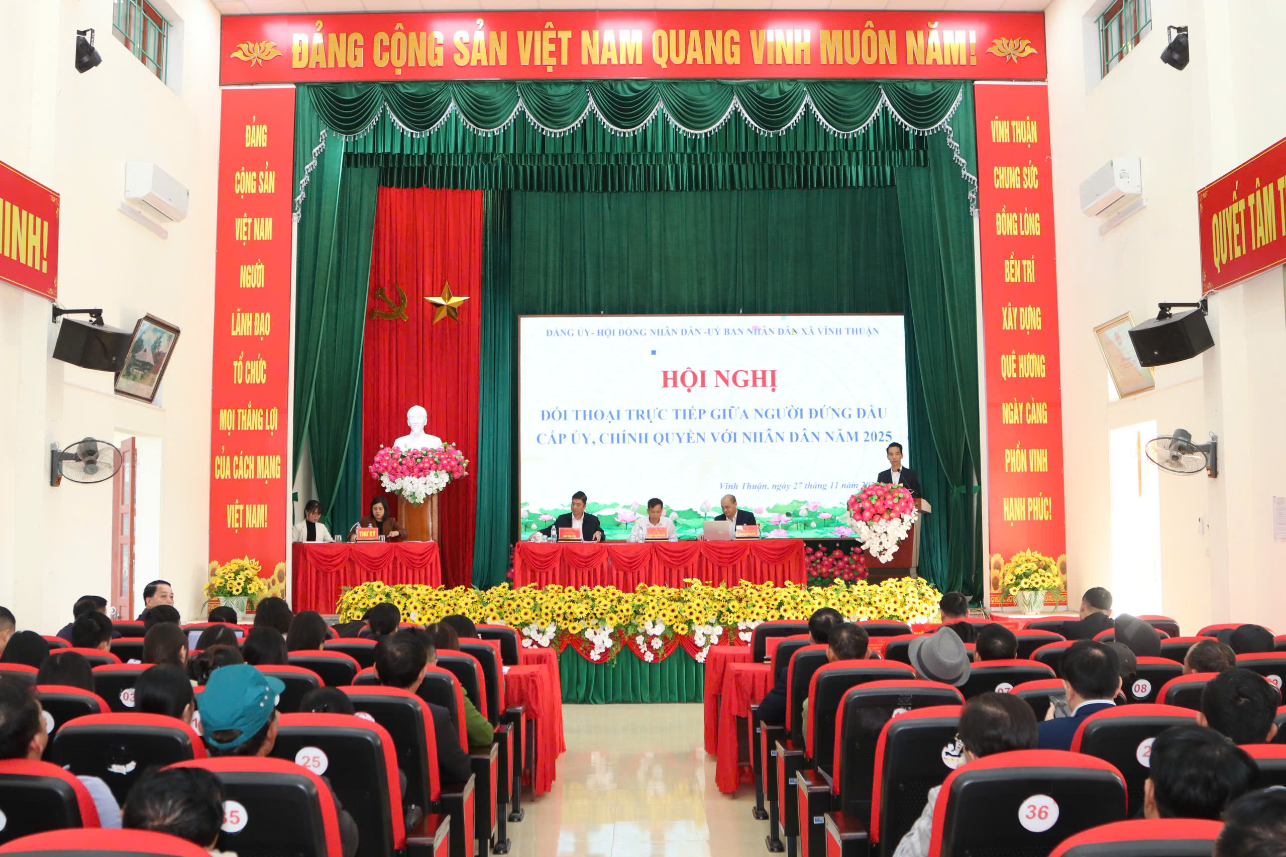 Đồng chí Trần Thanh Minh- Bí thư Đảng ủy- Chủ tịch HĐND xã phát biểuHội nghị đối thoại năm nay diễn ra trong bối cảnh xã Vĩnh Thuận vừa hoàn thành việc sáp nhập đơn vị hành chính, chính thức đi vào hoạt động được 5 tháng với quy mô mới gồm 3 xã Vĩnh An – Giang Biên – Dũng Tiến hợp nhất, có diện tích trên 23,5 km² và dân số gần 29 nghìn người. Khối lượng nhiệm vụ sau sáp nhập tăng gấp nhiều lần, đặt ra yêu cầu đối với bộ máy hành chính phải linh hoạt, chủ động, nâng cao chất lượng phục vụ Nhân dân. Cấp ủy, chính quyền xã sẽ lắng nghe, ghi nhận và giải trình đầy đủ trọng tâm, đúng quy định, không né tránh, không đùn đẩy trách nhiệm đối với những vấn đề người dân quan tâm, nêu ý kiến. Những vấn đề vượt thẩm quyền sẽ được tiếp thu và báo cáo cấp có thẩm quyền xem xét giải quyết, nhằm hướng tới mục tiêu xây dựng hệ thống chính trị ổn định, đoàn kết, đồng lòng, nhất trí, nhận được sự đồng thuận cao của Nhân dân.