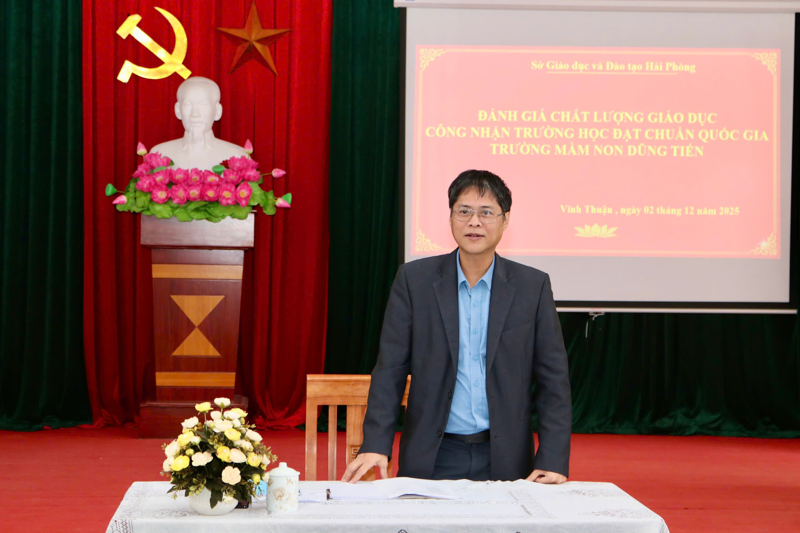 Lãnh đạo Sở GD-ĐT thành phố kết luận hội nghịBuổi làm việc diễn ra nghiêm túc, khách quan, là cơ sở quan trọng để Sở Giáo dục và Đào tạo xem xét công nhận Trường Mầm non Dũng Tiến đạt chuẩn Quốc gia mức độ 2, kiểm định chất lượng cấp độ 3 trong thời gian tới.