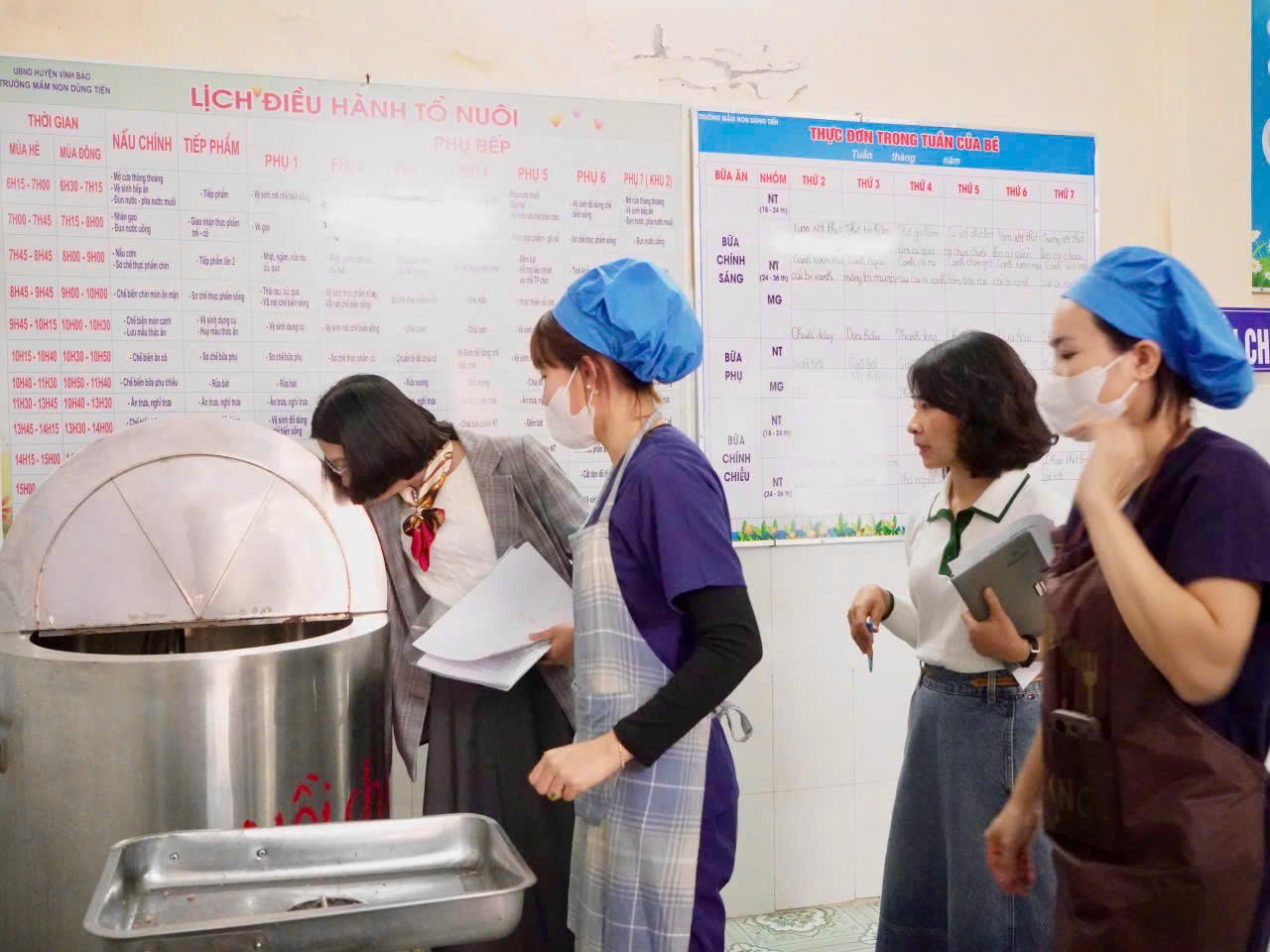 Đoàn đánh giá các hạm mục tại trườngBên cạnh đó, công tác đổi mới phương pháp dạy học theo hướng lấy trẻ làm trung tâm, ứng dụng công nghệ thông tin trong quản lý và giảng dạy tiếp tục được đẩy mạnh. Tỷ lệ trẻ 5 tuổi hoàn thành chương trình giáo dục mầm non đạt 100%. Trường Mầm non Dũng Tiến đã đạt chuẩn Quốc gia mức độ 1 và Kiểm định chất lượng cấp độ II từ năm 2020.