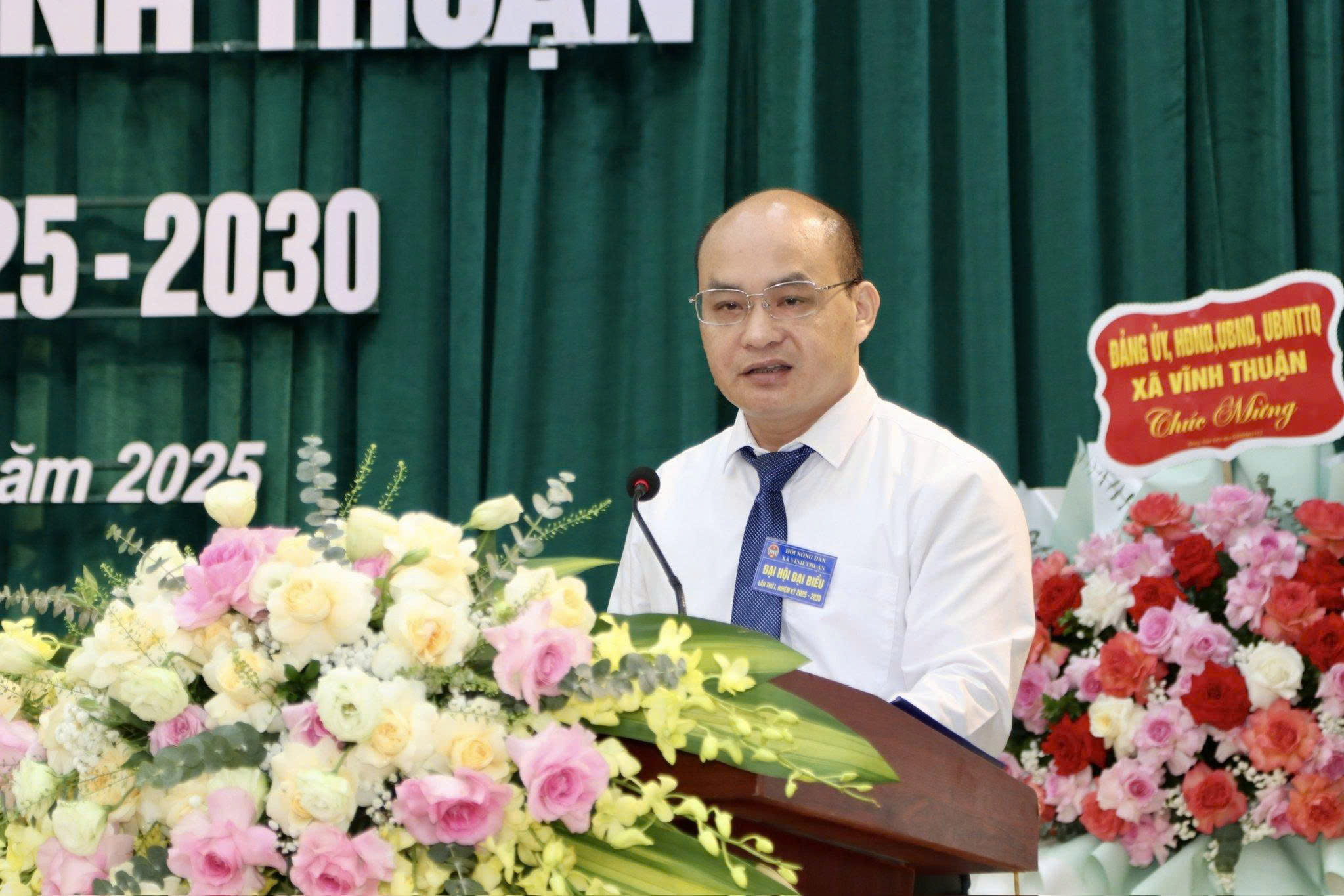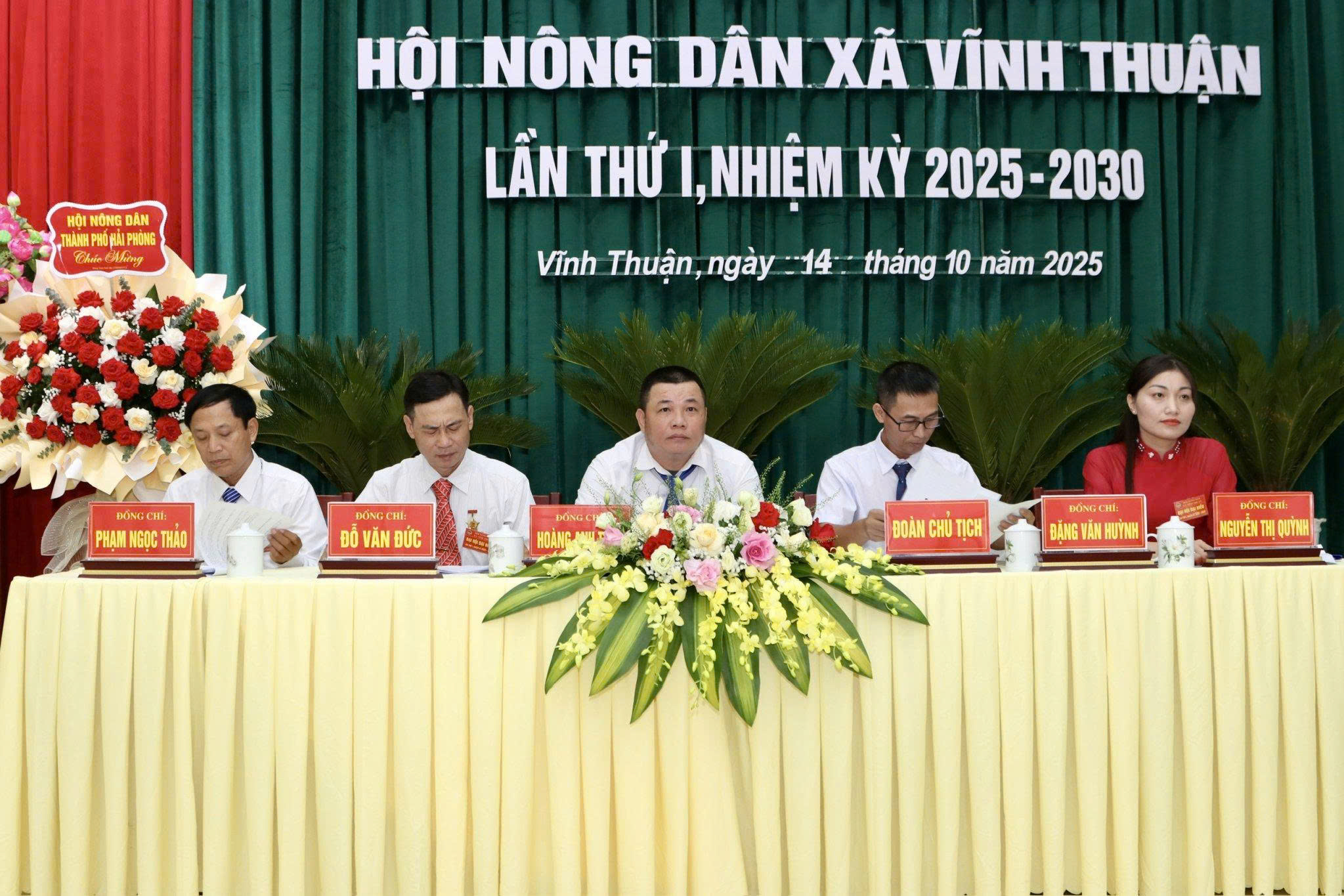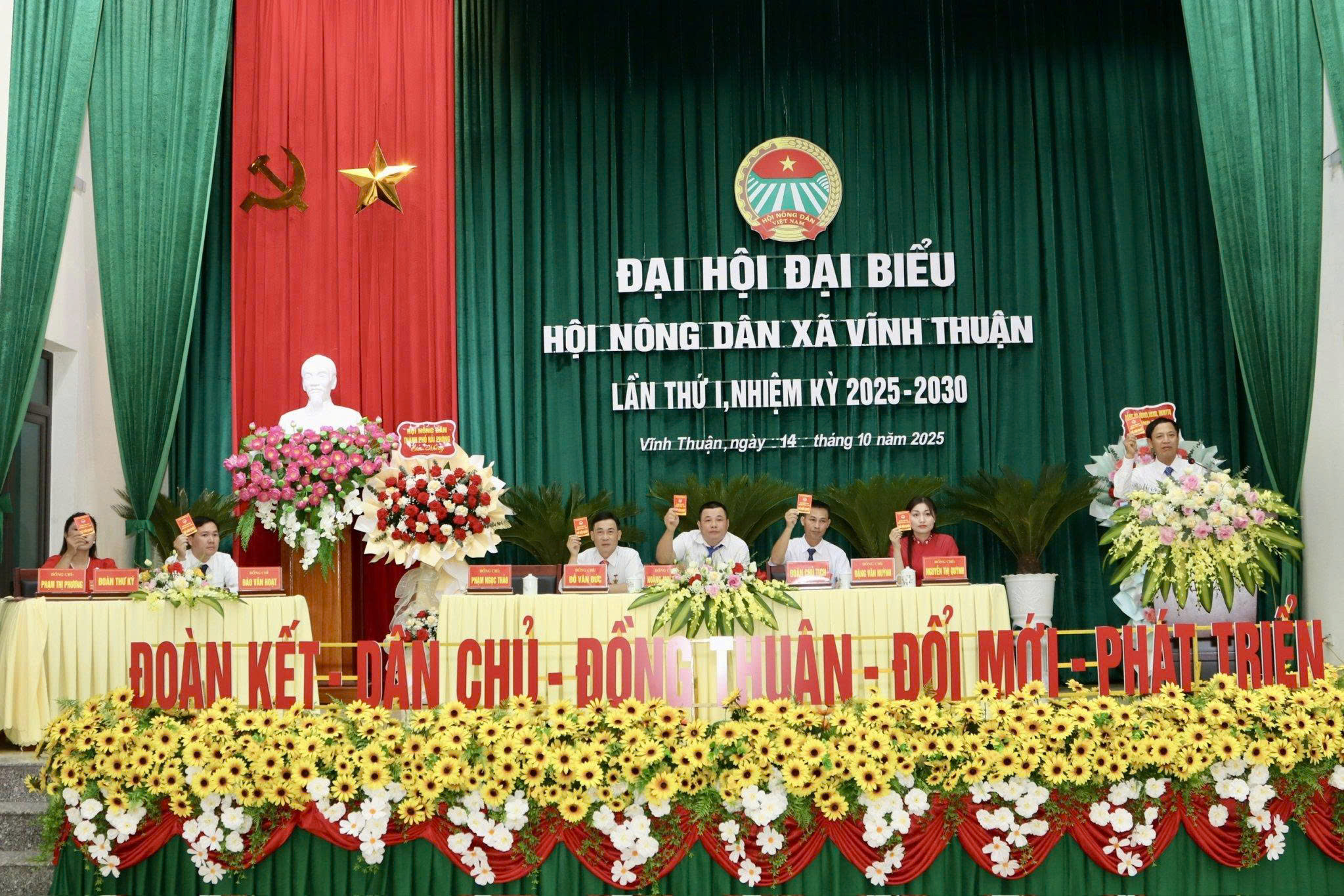 Các đại biểu biểu quyết thông qua Nghị quyết đại hộiĐại hội đã nghe Quyết định của Ban Chấp hành Hội Nông dân thành phố về chỉ định Ban Chấp hành, Ban thường vụ, Chức danh Chủ tịch, Phó chủ tịch Hội Nông dân xã Vĩnh Thuận khóa I, nhiệm kỳ 2025–2030. Theo đó, Ban chấp hành Hội Nông dân xã Vĩnh Thuận khóa I, nhiệm kỳ 2025–2030 gồm 31 đồng chí, đồng chí Hoàng Anh Tuấn được chỉ định giữ chức Chủ tịch Hội Nông dân xã Vĩnh Thuận nhiệm kỳ 2025–2030.