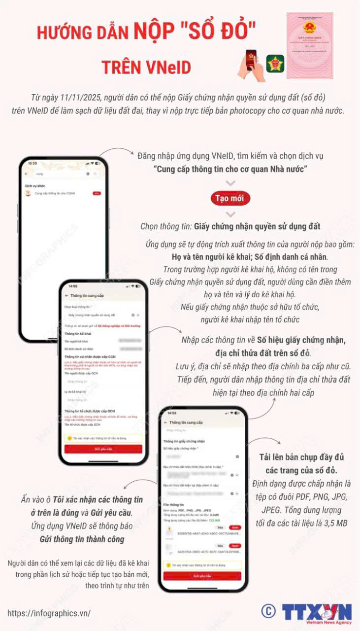 HƯỚNG DẪN CÁCH NỘP “SỔ ĐỎ” TRÊN ỨNG DỤNG VNEID ĐỂ “LÀM SẠCH” DỮ LIỆU ĐẤT ĐAI