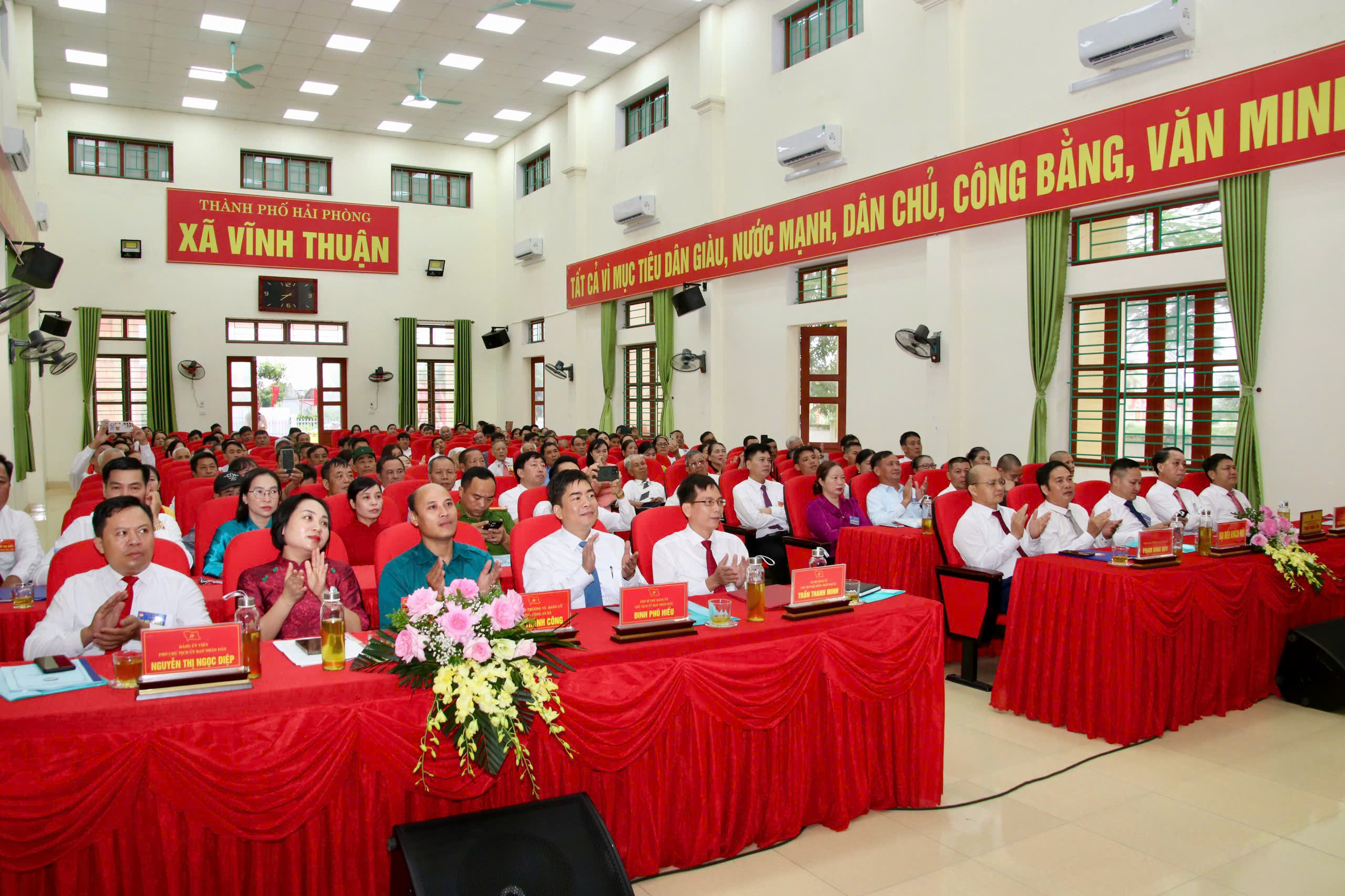 Đồng chí Đoàn Đức Giang, Chủ tịch MTTQ xã nhiệm kì 2024-2029 phát biểu khai mạcNhiệm kỳ qua, Ủy ban MTTQ Việt Nam xã Vĩnh Thuận đã phát huy hiệu quả vai trò tập hợp khối đại đoàn kết toàn dân, góp phần thực hiện thắng lợi các nhiệm vụ phát triển kinh tế - xã hội của địa phương. Nhiều phong trào thi đua được đẩy mạnh, lan tỏa sâu rộng, tiêu biểu là phong trào “Toàn dân đoàn kết xây dựng nông thôn mới, đô thị văn minh”. MTTQ xã đã vận động trên 800 hộ dân hiến hơn 0,85 ha đất ở và đất nông nghiệp, đóng góp trên 300 ngày công, nâng cấp 107 công trình giao thông và dân dụng, ủng hộ các dự án lớn như đường tỉnh 354 Tiên Lãng – Vĩnh Bảo, khu công nghiệp Dũng Tiến – Giang Biên.