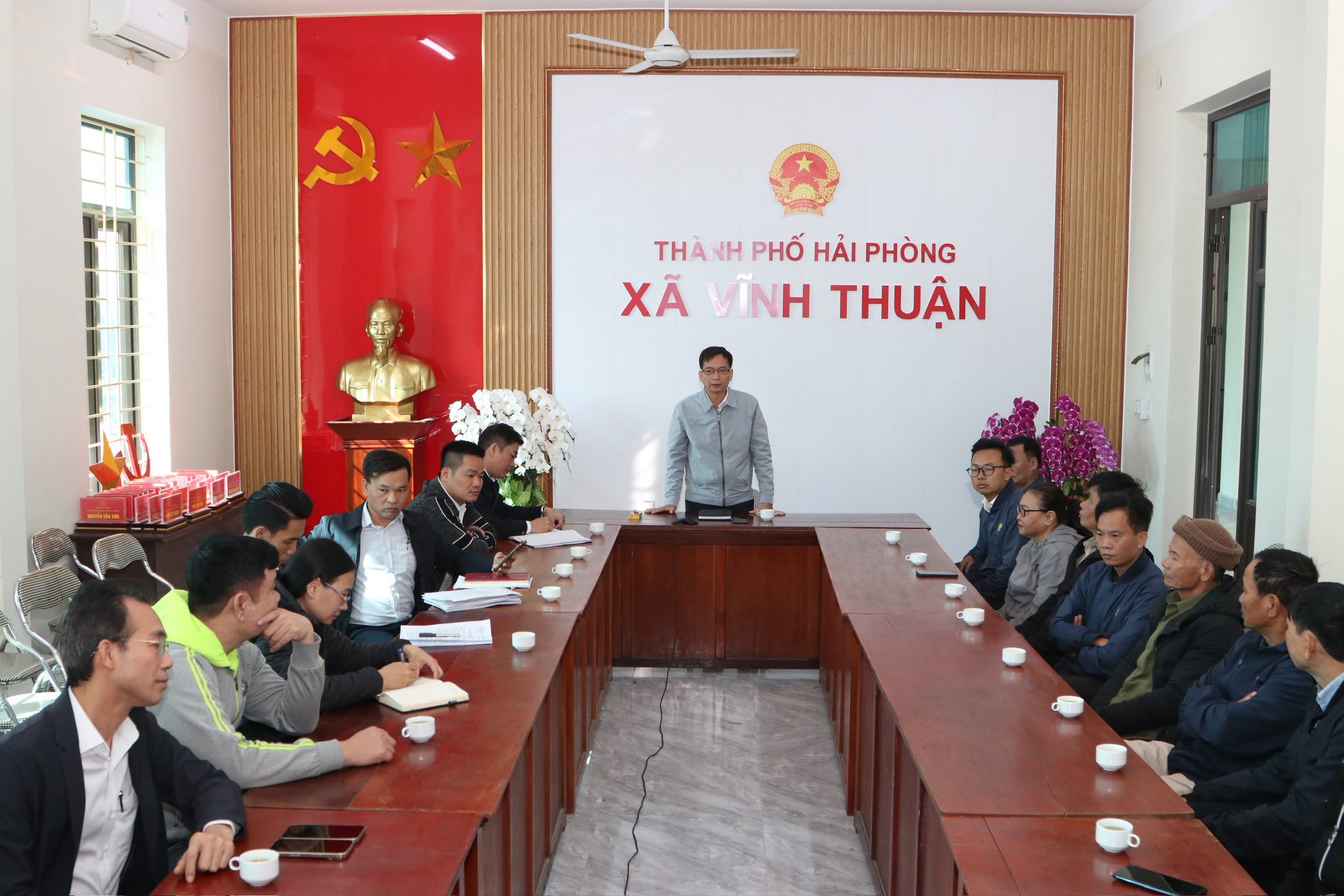 Đồng chí Đinh Phú Hiếu, Phó bí thư Đảng ủy, Chủ tịch UBND xã phát biểuĐồng chí yêu cầu các chủ trang trại thực hiện nghiêm quy định pháp luật về chăn nuôi, xử lý chất thải và bảo vệ môi trường; khẩn trương khắc phục tồn tại, triển khai các giải pháp xử lý triệt để mùi hôi, không để phát tán ra khu vực xung quanh. Đồng thời giao Phòng Kinh tế xã và Công an xã tăng cường kiểm tra, giám sát, kịp thời phát hiện và xử lý vi phạm. UBND xã sẽ báo cáo cấp có thẩm quyền xem xét biện pháp tạm dừng hoặc đình chỉ hoạt động đối với các trang trại cố tình không chấp hành.