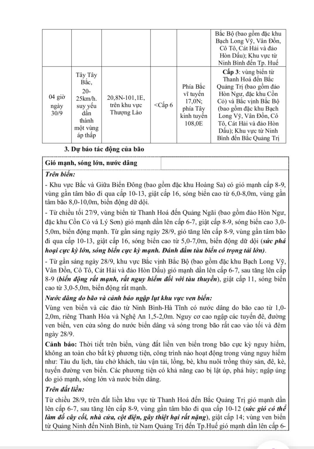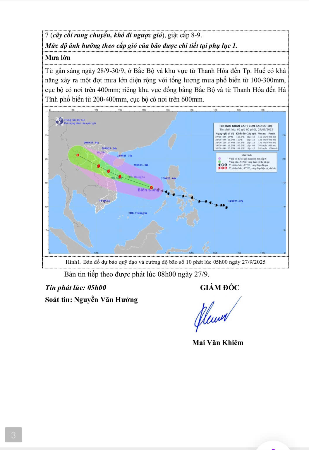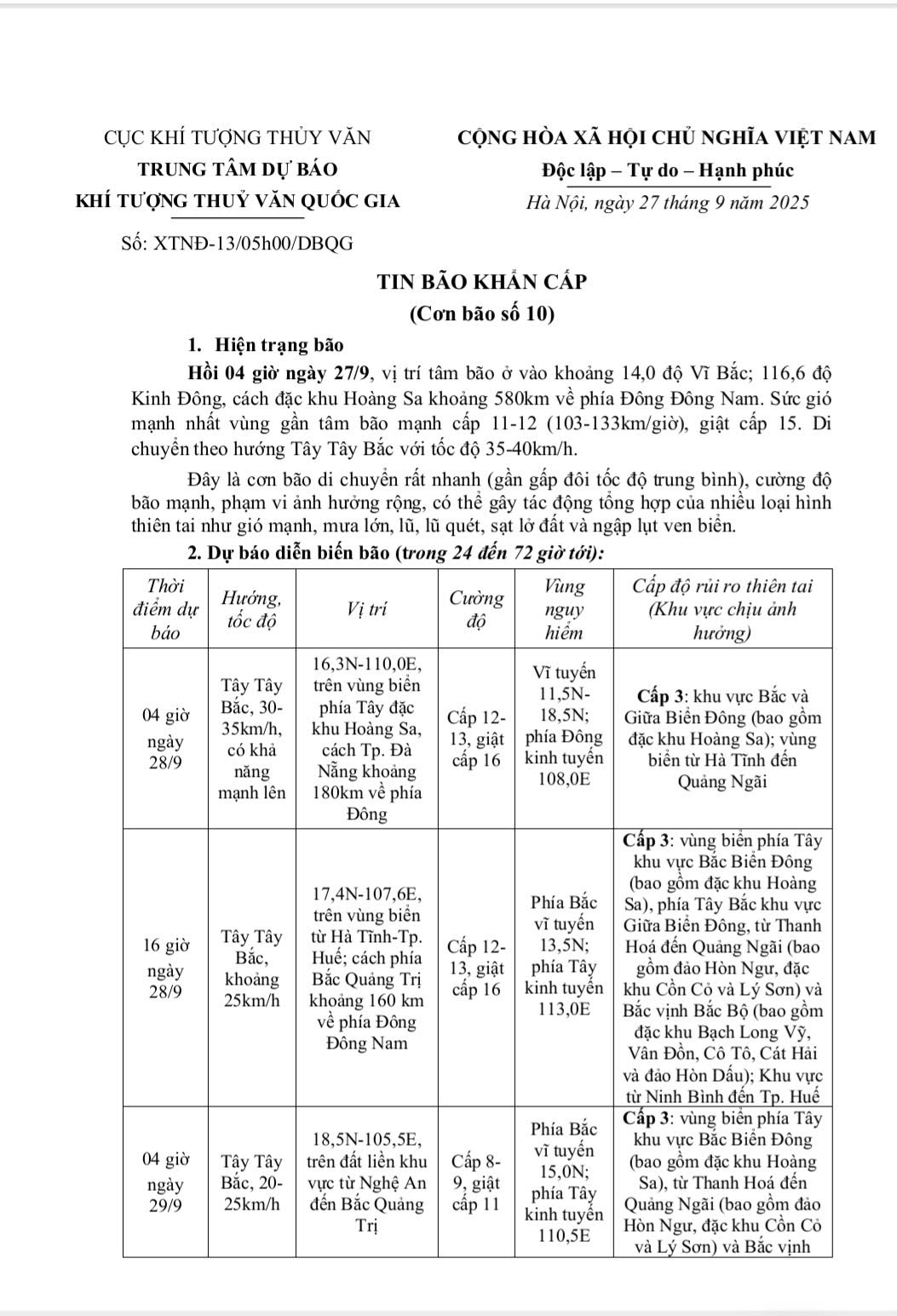 TIN BÃO KHẨN CẤP (CƠN BÃO SỐ 10). Cập nhật lúc: 05h00 ngày 27/9/2025.
