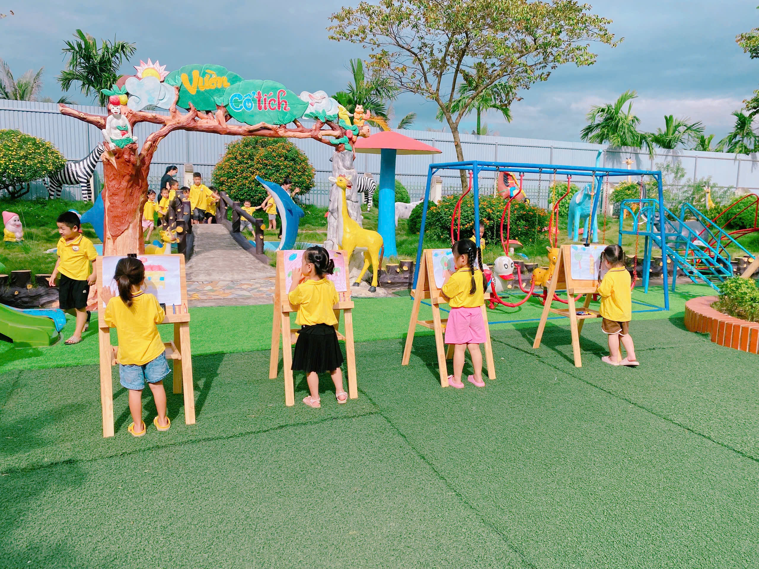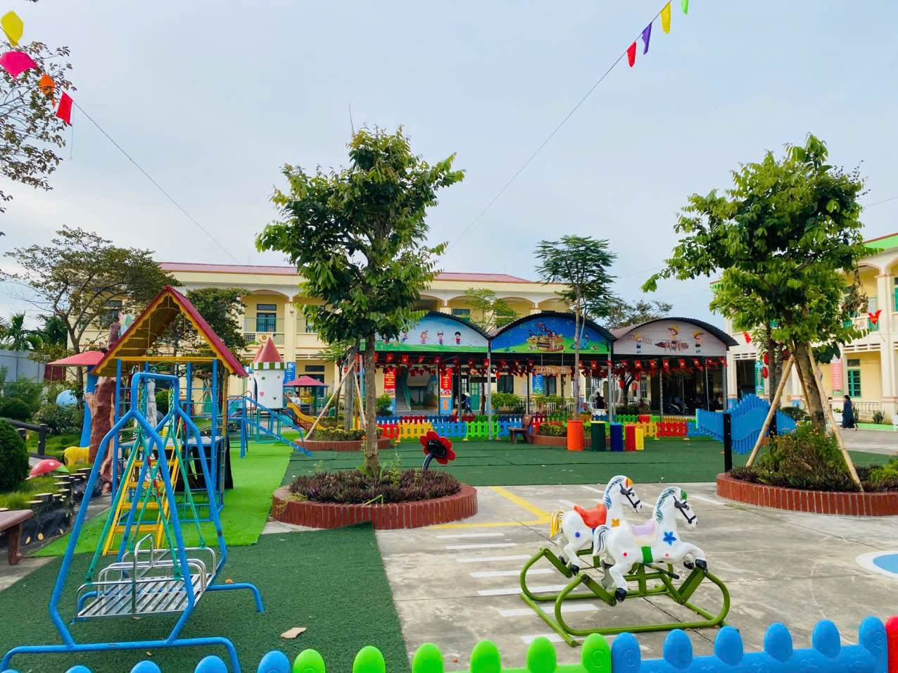 Không chỉ quan tâm đến học tập trong lớp, nhà trường còn đặc biệt chú trọng phát triển thể chất và kỹ năng sống cho trẻ thông qua các hoạt động ngoài trời. Trẻ được trải nghiệm tại sân thể dục, khu thể thao, khu đồ chơi ngoài trời và khu trồng rau – trồng cây. Những hoạt động này không chỉ giúp trẻ rèn luyện sức khỏe mà còn nuôi dưỡng tình yêu thiên nhiên, hình thành thói quen tốt và kỹ năng tự phục vụ. Nhờ tổ chức khoa học, hằng năm tỷ lệ trẻ 5 tuổi ra lớp đạt 100%; tỷ lệ chuyên cần đạt trên 90%; tỷ lệ trẻ kênh bình thường đạt 98,3%; suy dinh dưỡng và thấp còi duy trì dưới 2%.