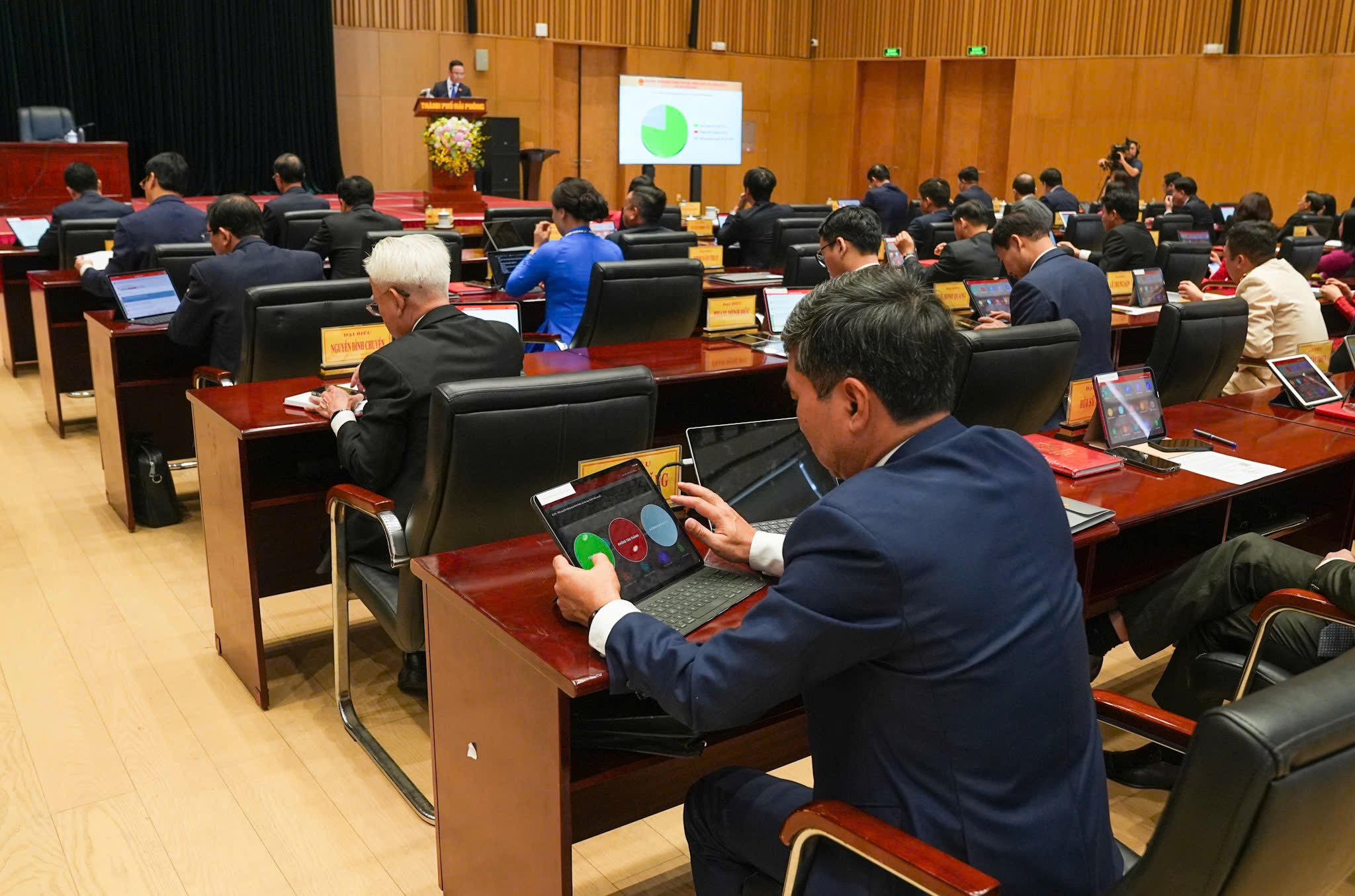 Các đại biểu biểu quyết tại Kỳ họp.Tại Kỳ họp, các đại biểu HĐND thành phố đã biểu quyết nhất trí thông qua 19 dự thảo Nghị quyết, bao gồm:
