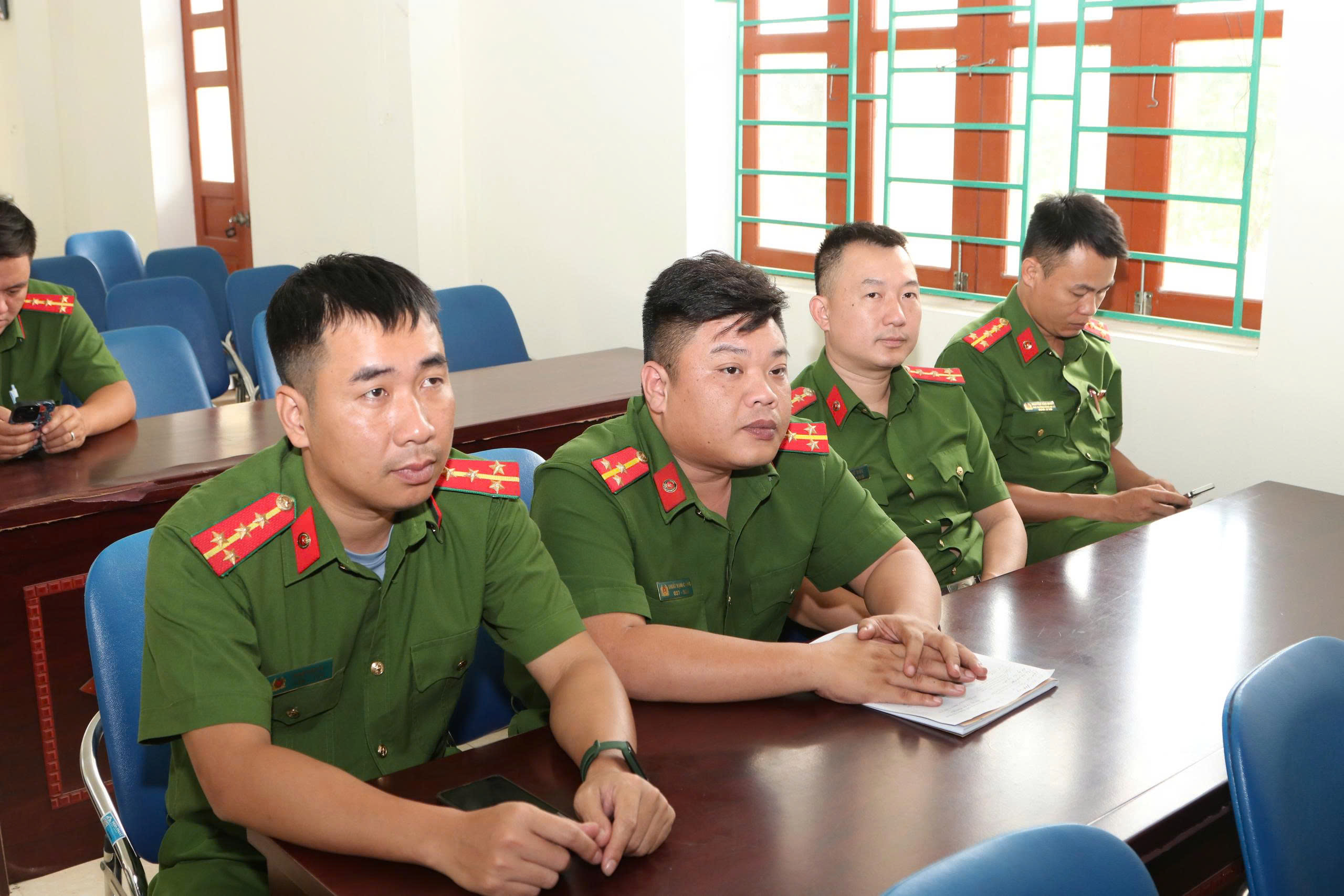 Đồng chí Đinh Phú Hiếu- Phó bí thư Đảng ủy- Chủ tịch UBND xã, cùng các đồng chí lãnh đạo các phòng ngiệp vụ công an TP, công an xã
