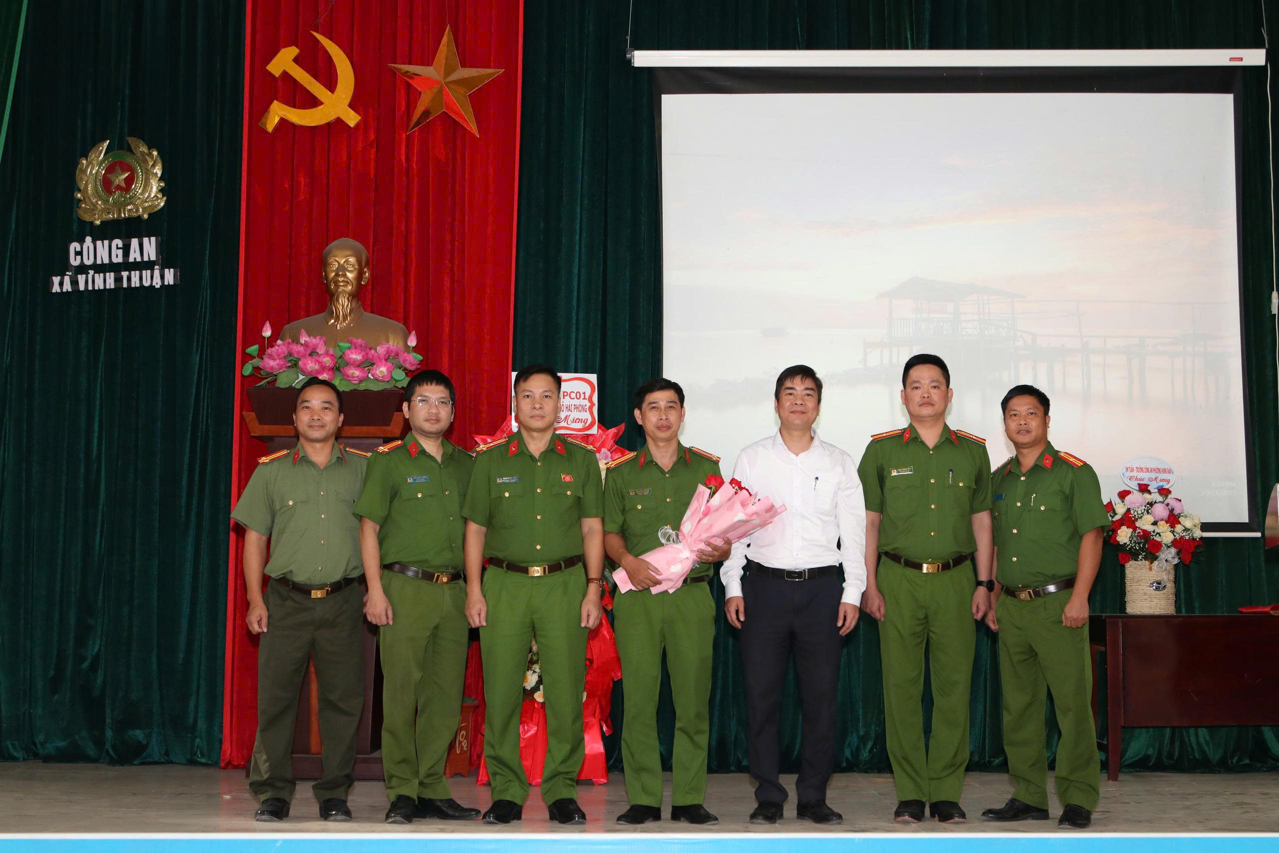 Công an xã Vĩnh Thuận tổ chức Lễ công bố Quyết định của Giám đốc Công an Thành phố về công tác cán bộ.