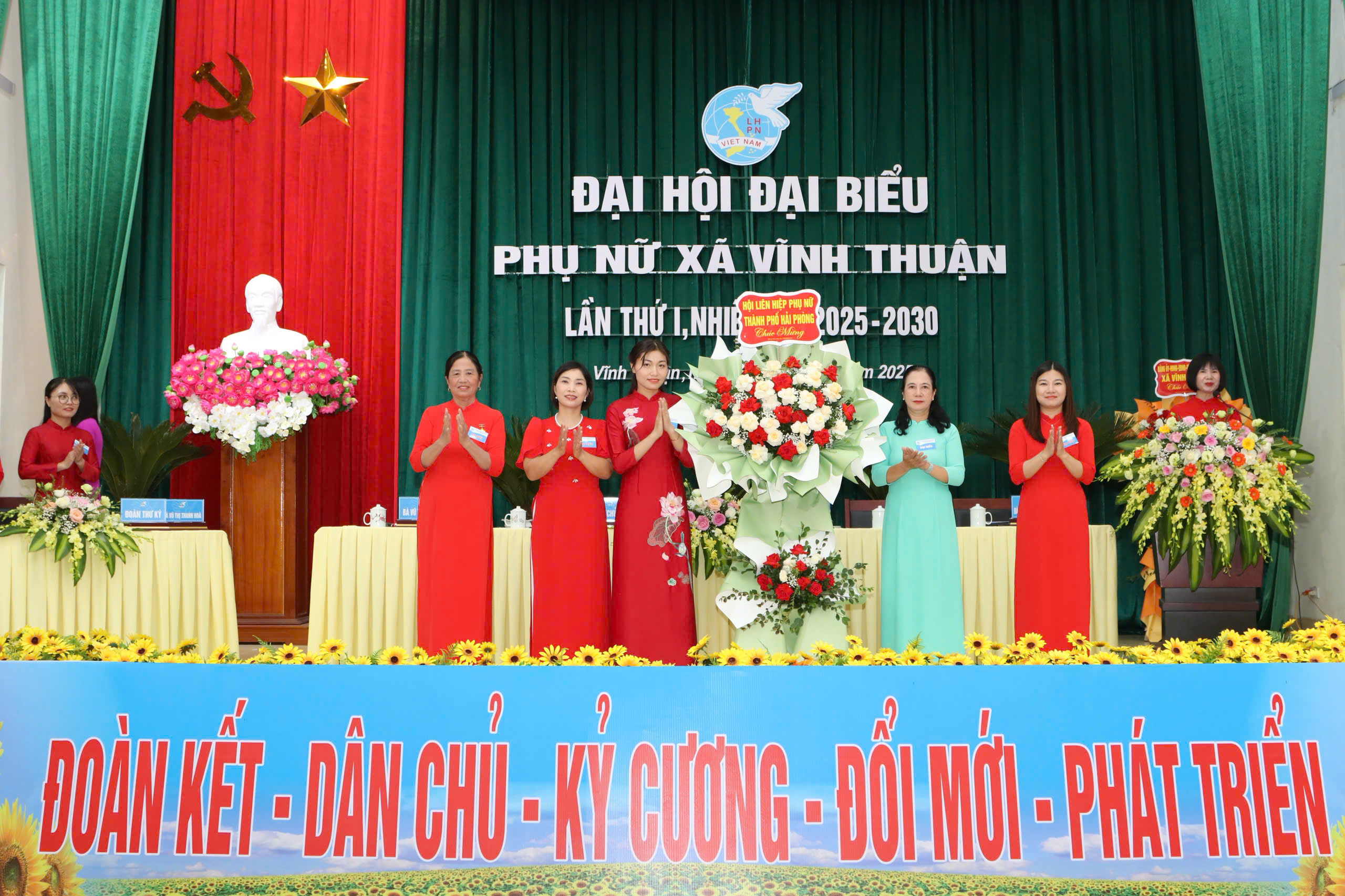 (Vinhthuan.haiphong.gov.vn) - Sáng 22/10, Hội Liên hiệp Phụ nữ (LHPN) xã Vĩnh Thuận tổ chức Đại hội Đại biểu Phụ nữ xã lần thứ I, nhiệm kỳ 2025–2030. Dự Đại hội có đồng chí Đinh Phú Hiếu – Chủ tịch Ủy ban nhân dân xã, đại biểu Hội Liên hiệp Phụ nữ Thành phố; các đồng chí lãnh đạo Đảng ủy, Ủy ban Mặt trận Tổ quốc Việt Nam xã cùng 105 đại biểu chính thức, đại diện cho 3.926 hội viên phụ nữ toàn xã.