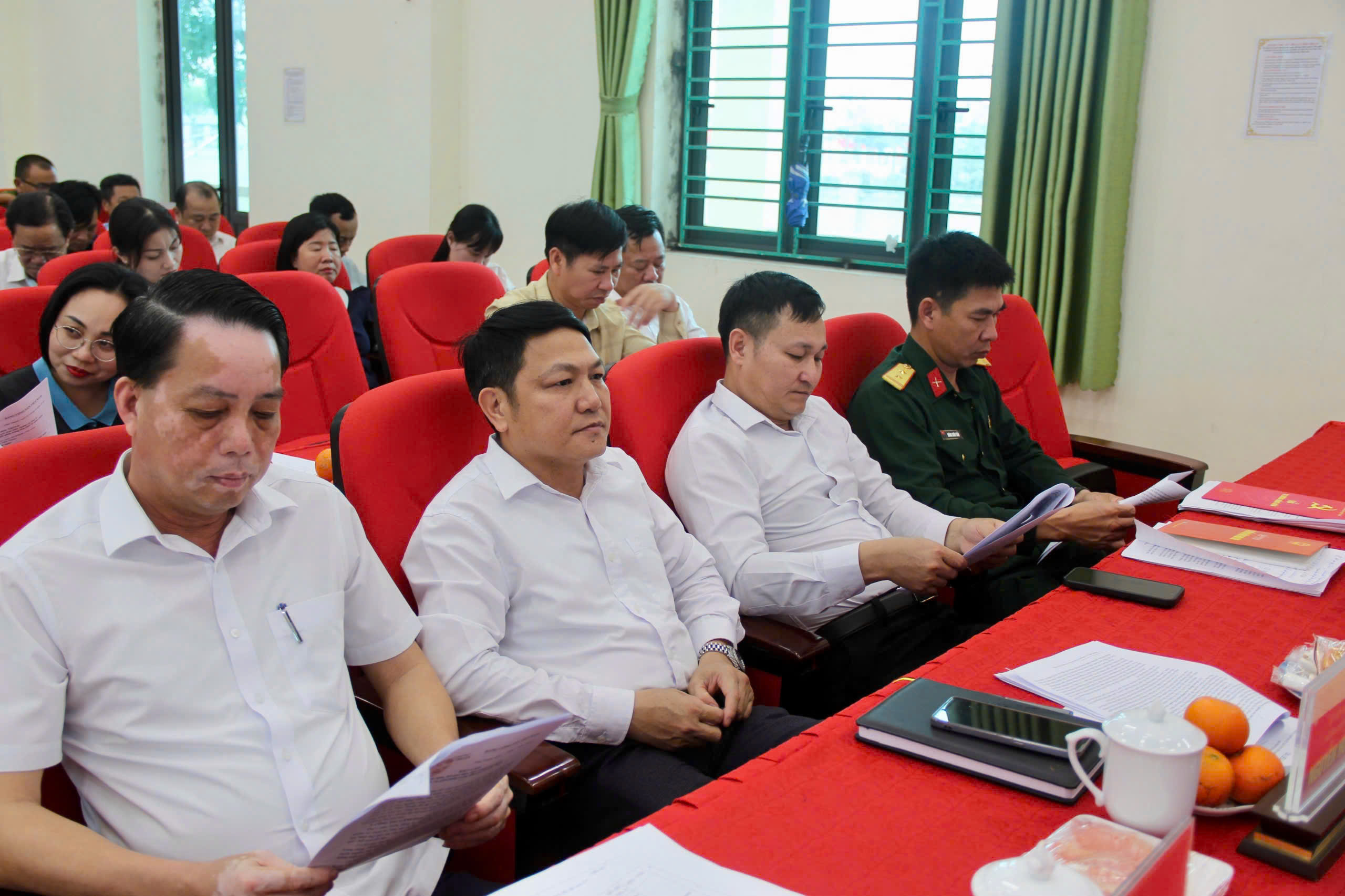 Các đại biểu dự hội nghịTrên cơ sở những kết quả đạt được, những tồn tại, hạn chế hội nghị đã thảo luận, thống nhất các nhóm chỉ tiêu, phương hướng, nhiệm vụ và các giải pháp trọng tâm quý 2/2026; Tiếp tục xây dựng Đảng và hệ thống chính trị trong sạch, vững mạnh; kiện toàn, ổn định tổ chức bộ máy chính quyền nhiệm kỳ 2026–2031; đẩy mạnh phát triển kinh tế – xã hội, quyết liệt giải phóng mặt bằng các dự án trọng điểm, giải ngân vốn đầu tư công; tăng cường cải cách hành chính, chuyển đổi số; chăm lo các lĩnh vực văn hóa – xã hội, bảo đảm an sinh xã hội; giữ vững quốc phòng – an ninh, trật tự an toàn xã hội trên địa bàn.