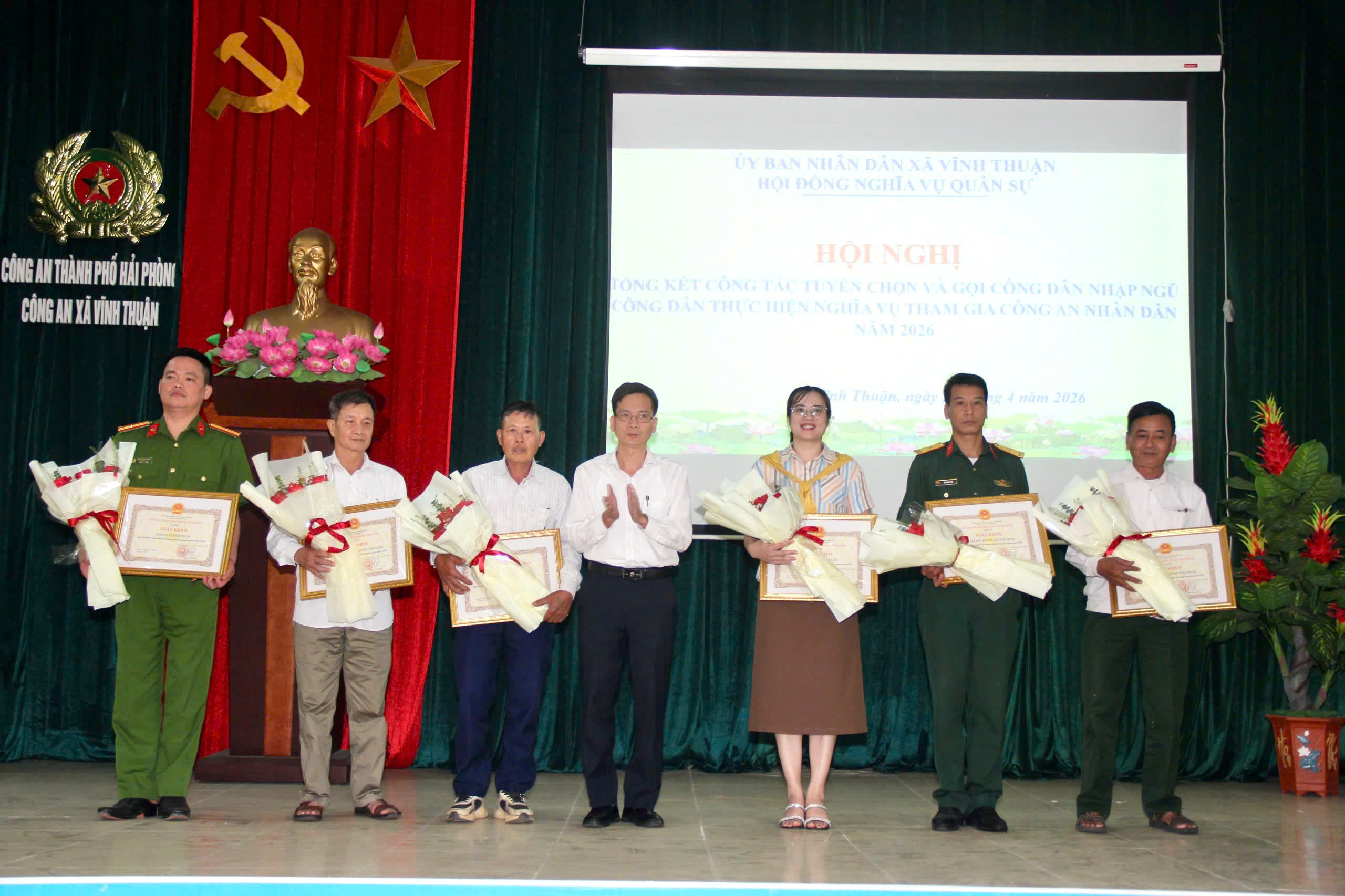 Nhân dịp này, Ủy ban nhân dân xã khen thưởng 6 tập thể, 9 cá nhân có thành tích xuất sắc trong công tác tuyển chọn, gọi công dân nhập ngũ và thực hiện nghĩa vụ tham gia Công an nhân dân năm 2026.