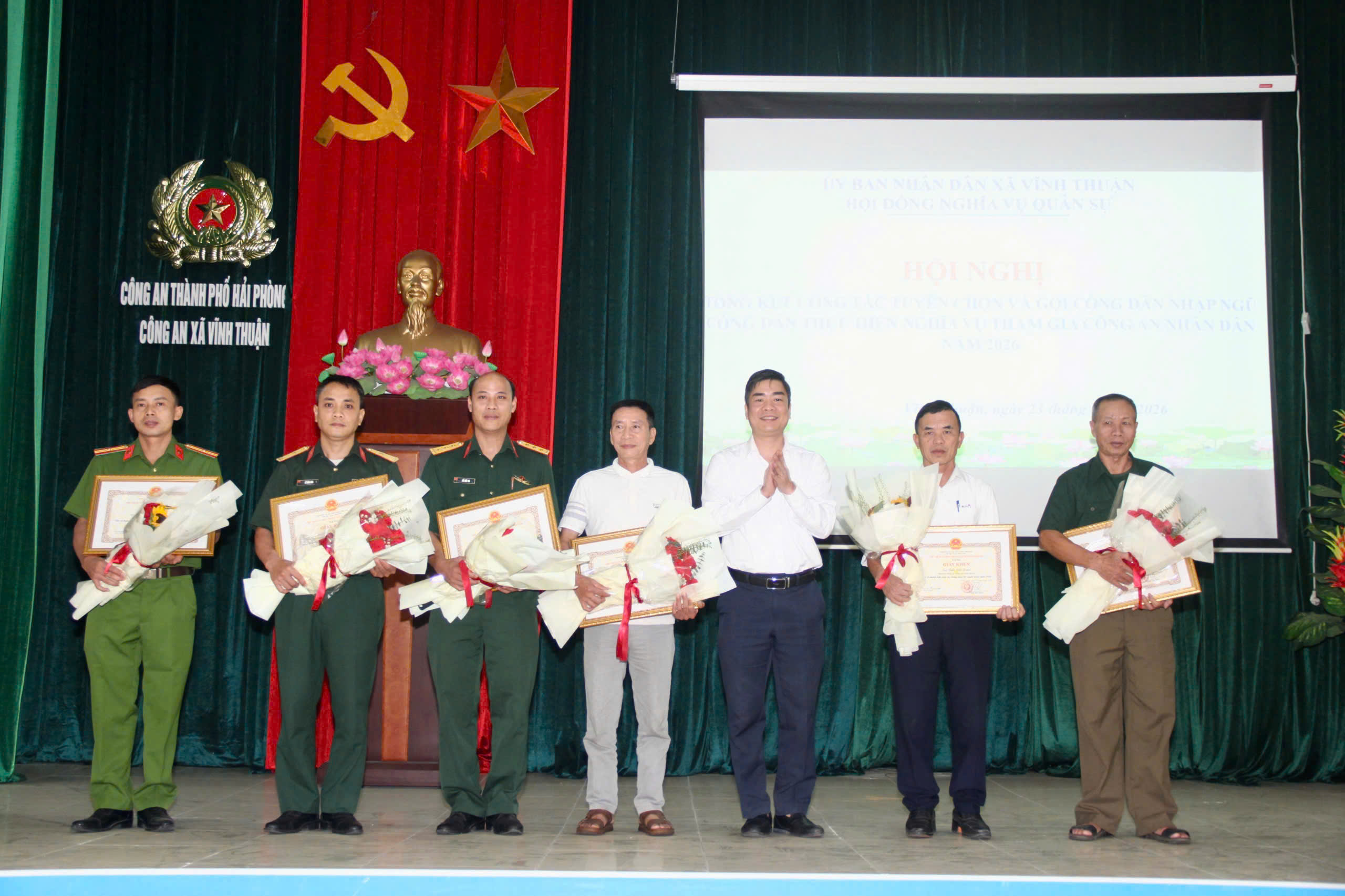 Chiều 23/4/2026, Hội đồng Nghĩa vụ quân sự xã Vĩnh Thuận tổ chức Hội nghị tổng kết công tác tuyển chọn, gọi công dân nhập ngũ và thực hiện nghĩa vụ tham gia Công an nhân dân năm 2026.