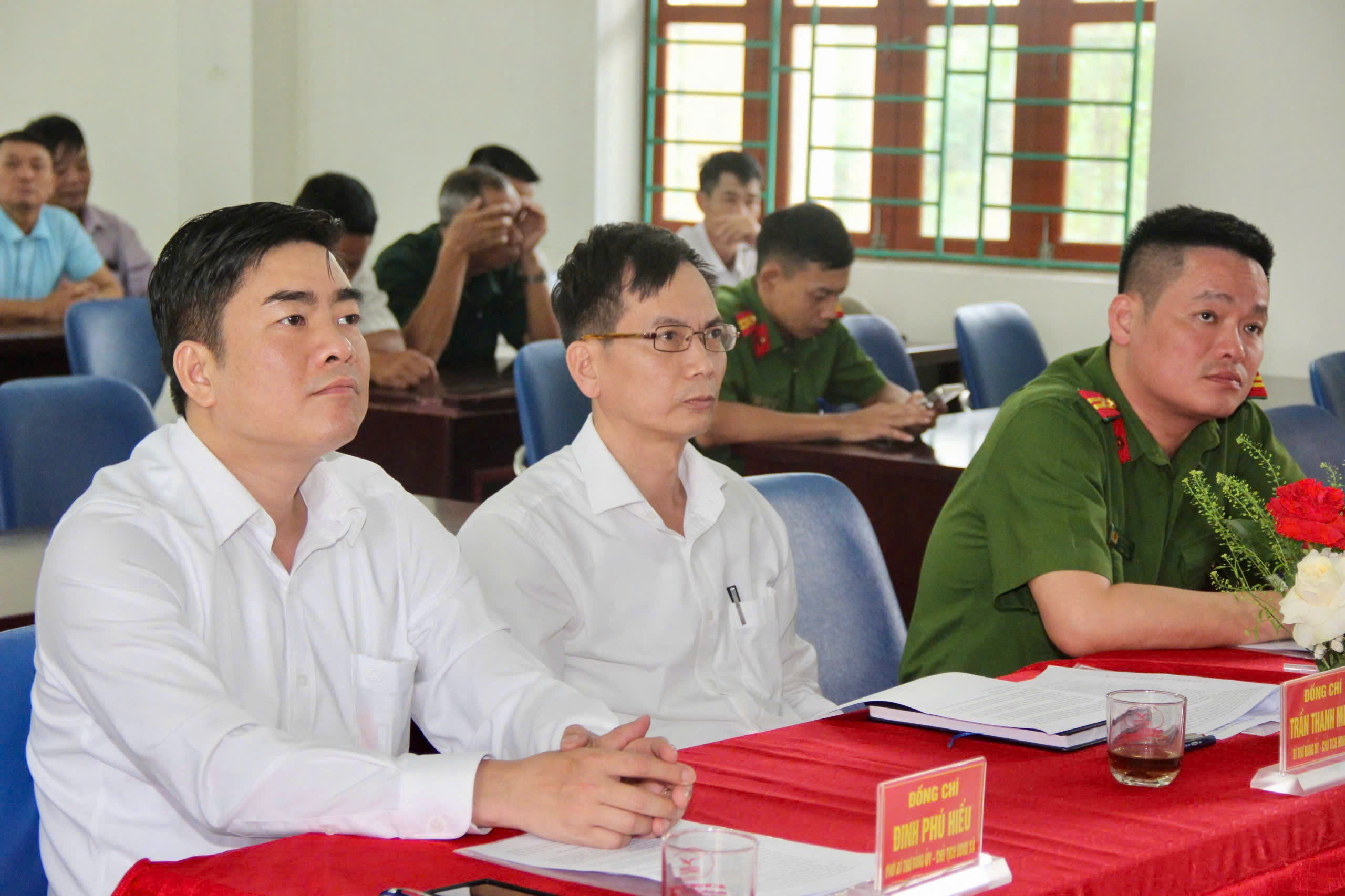 Đồng chí Trần Thanh Minh – Bí thư Đảng ủy, Chủ tịch HĐND xã; đồng chí Đinh Phú Hiếu – Phó Bí thư Đảng ủy, Chủ tịch UBND xã dự hội nghị