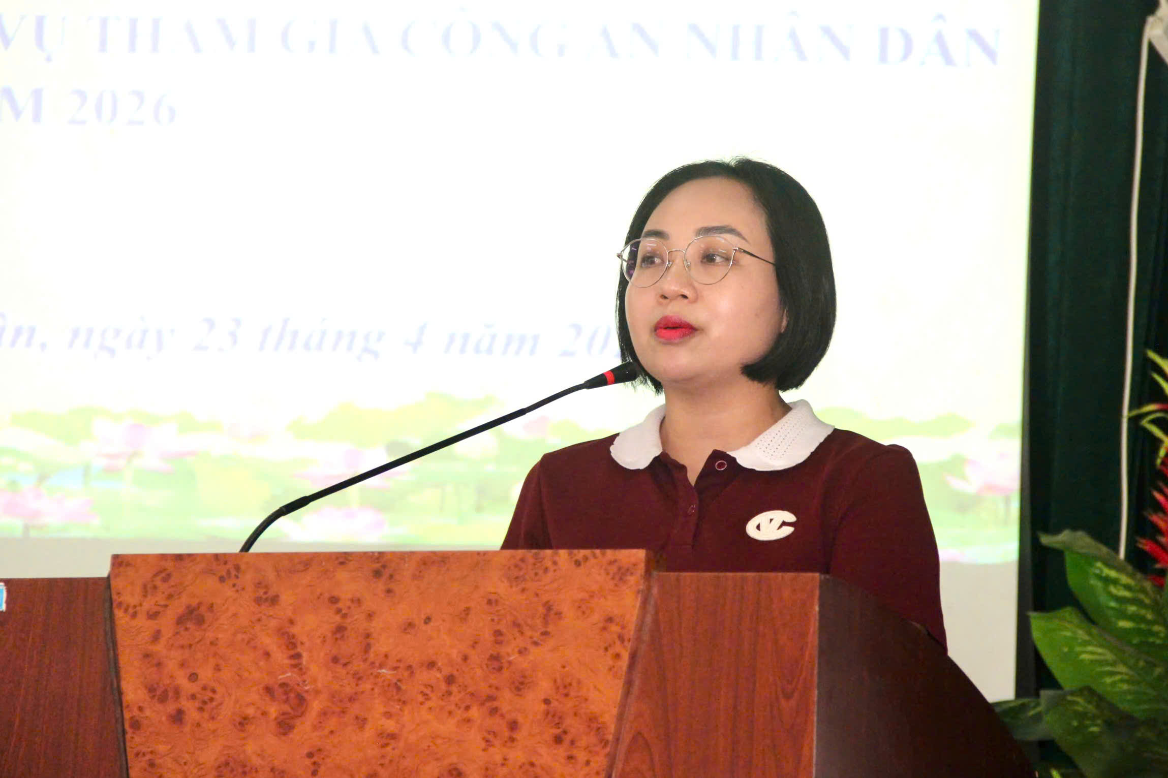 Đồng chí Nguyễn Thị Ngọc Diệp, Phó Chủ tịch UBND xã báo cáo tại hội nghị