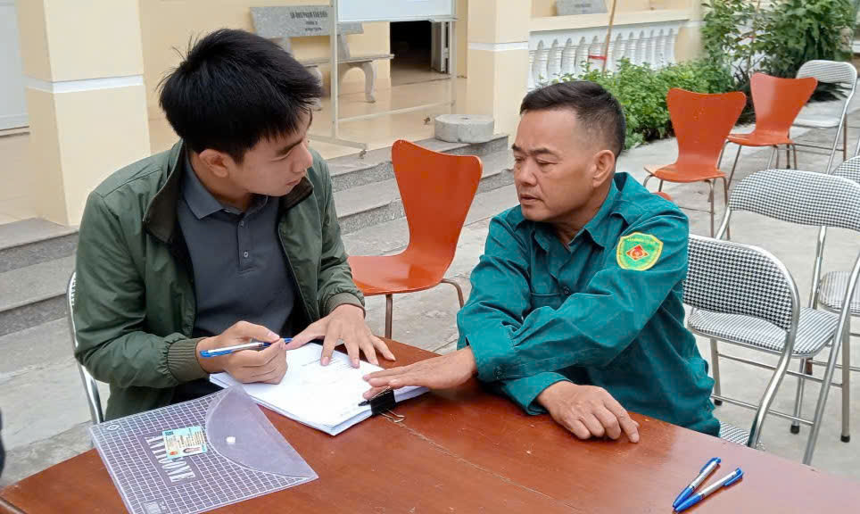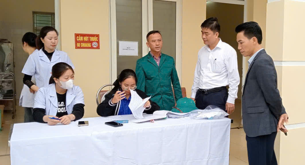 Đồng chí Trần Thanh Minh - Bí thư Đảng ủy, Chủ tịch HĐND xã; đồng chí Đinh Phú Hiếu - Phó Bí thư Đảng ủy, Chủ tịch UBND xã đã đến kiểm tra, động viên lực lượng làm công tác khám tuyển NVQS và công dân tới khám.