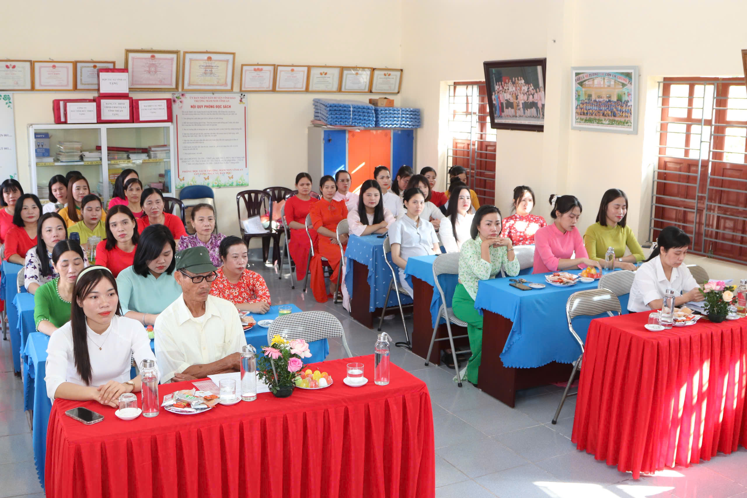 Các đại biểu tham gia Hội nghịVề chuyên môn, nhà trường thực hiện nghiêm chương trình giáo dục mầm non, đảm bảo an toàn tuyệt đối về thể chất và tinh thần cho trẻ. 100% giáo viên xây dựng kế hoạch, lưu trữ hồ sơ trên phần mềm Edoc, ứng dụng hiệu quả công nghệ thông tin và chuyển đổi số trong dạy học. Năm học qua, giáo viên toàn trường đã xây dựng 155 video học liệu, và nhà trường được Phòng Giáo dục đánh giá cao với sáng kiến ứng dụng công nghệ AI trong hoạt động kể chuyện cho trẻ. Tỷ lệ trẻ đạt các mục tiêu phát triển cuối độ tuổi đạt trên 97%. Các phong trào thi đua, hội thi được triển khai sôi nổi và hiệu quả. Trong đợt thi đua chào mừng Ngày Nhà giáo Việt Nam 20/11, 30 giáo viên tham gia Hội thi “Giáo viên giỏi – Cô nuôi giỏi” cấp trường, kết quả có 16 đồng chí đạt loại giỏi, 10 đồng chí đạt loại khá. Ở phần thi nhân viên nuôi dưỡng, có 5/8 đồng chí đạt loại giỏi, trong đó 1 đồng chí đạt Giải Nhì cấp huyện. Toàn trường có 42 sáng kiến kinh nghiệm, trong đó 6 sáng kiến được công nhận cấp huyện.