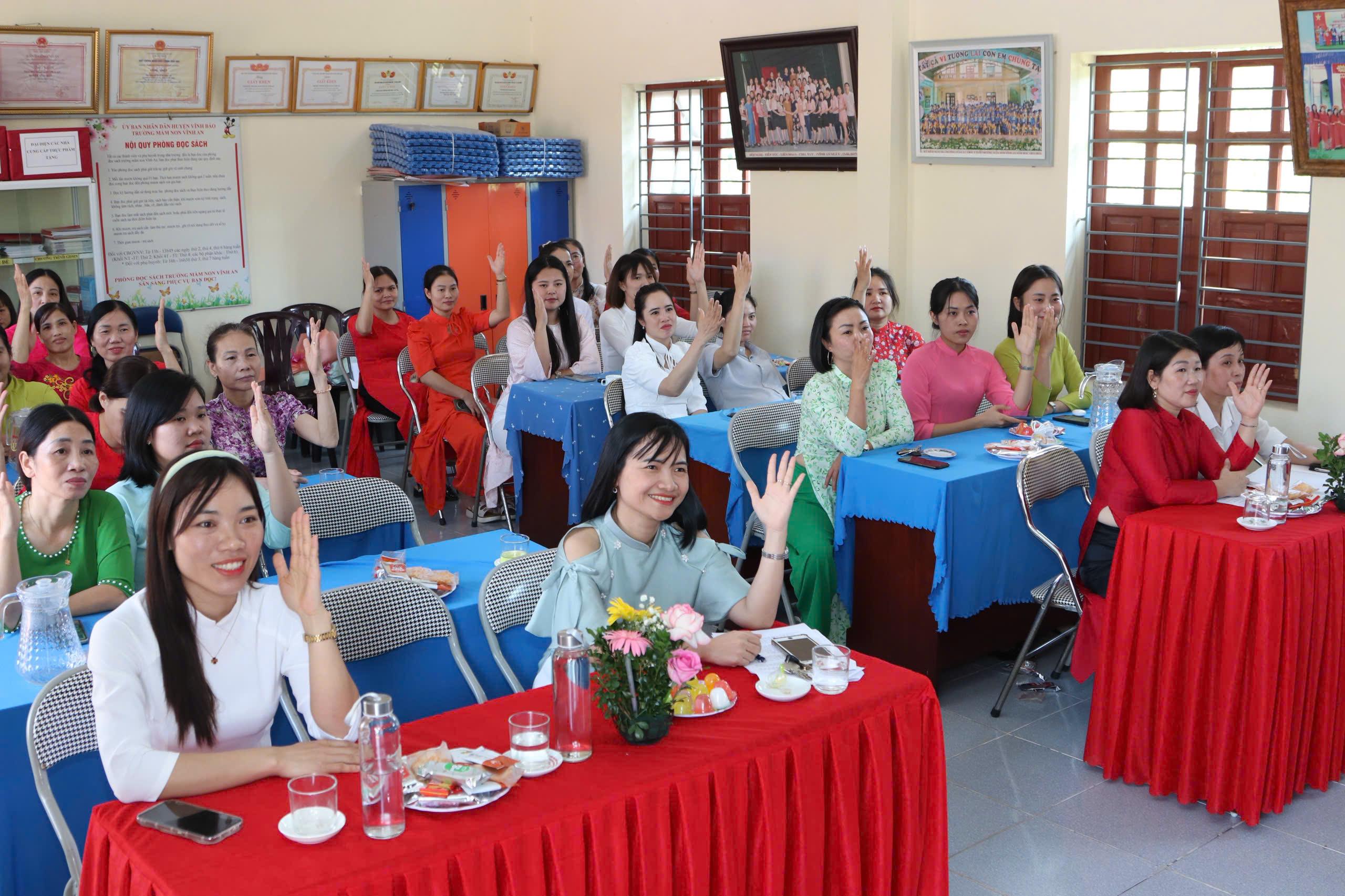 Biểu quyết thông qua biên bản Hội nghịHội nghị đã thảo luận sôi nổi, thông qua các quy chế dân chủ, quy chế chi tiêu nội bộ, phát động phong trào thi đua năm học mới và tổ chức ký cam kết giữa Ban giám hiệu và các tổ chuyên môn. Với tinh thần đoàn kết – dân chủ – trách nhiệm – sáng tạo, hội nghị cán bộ, viên chức, người lao động năm học 2025–2026 của Trường Mầm non Vĩnh An đã thành công tốt đẹp, tạo khí thế thi đua sôi nổi, quyết tâm hoàn thành xuất sắc các nhiệm vụ trong năm học mới.