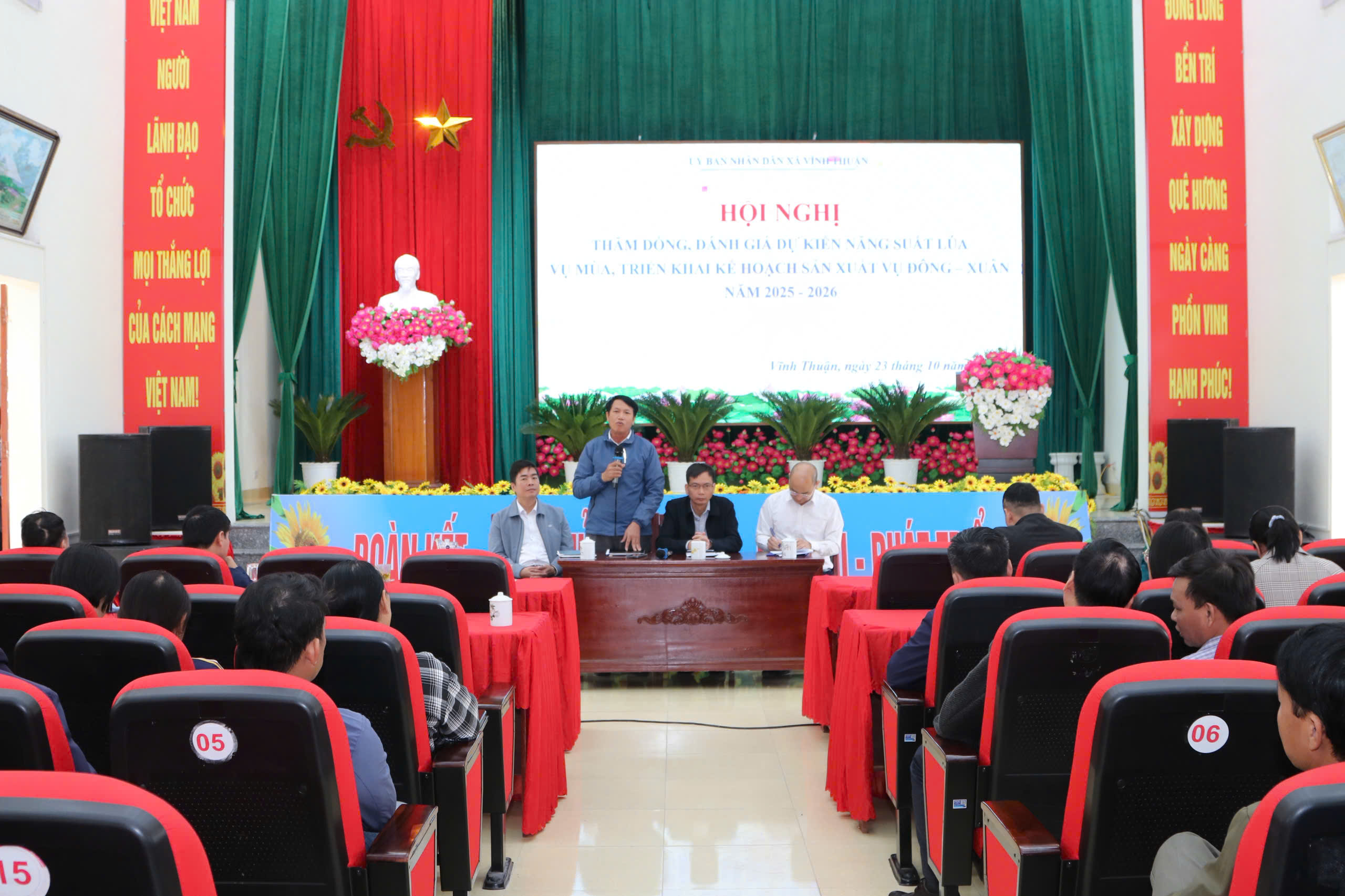 Đồng chí Trần Thanh Minh- Bí thư Đảng ủy- Chủ tịch HĐND xã phát biểuTại hội nghị, các đại biểu trao đổi, thảo luận, bàn các giải pháp thu hoạch lúa mùa, sản xuất vụ Đông xuân 2025-2026.