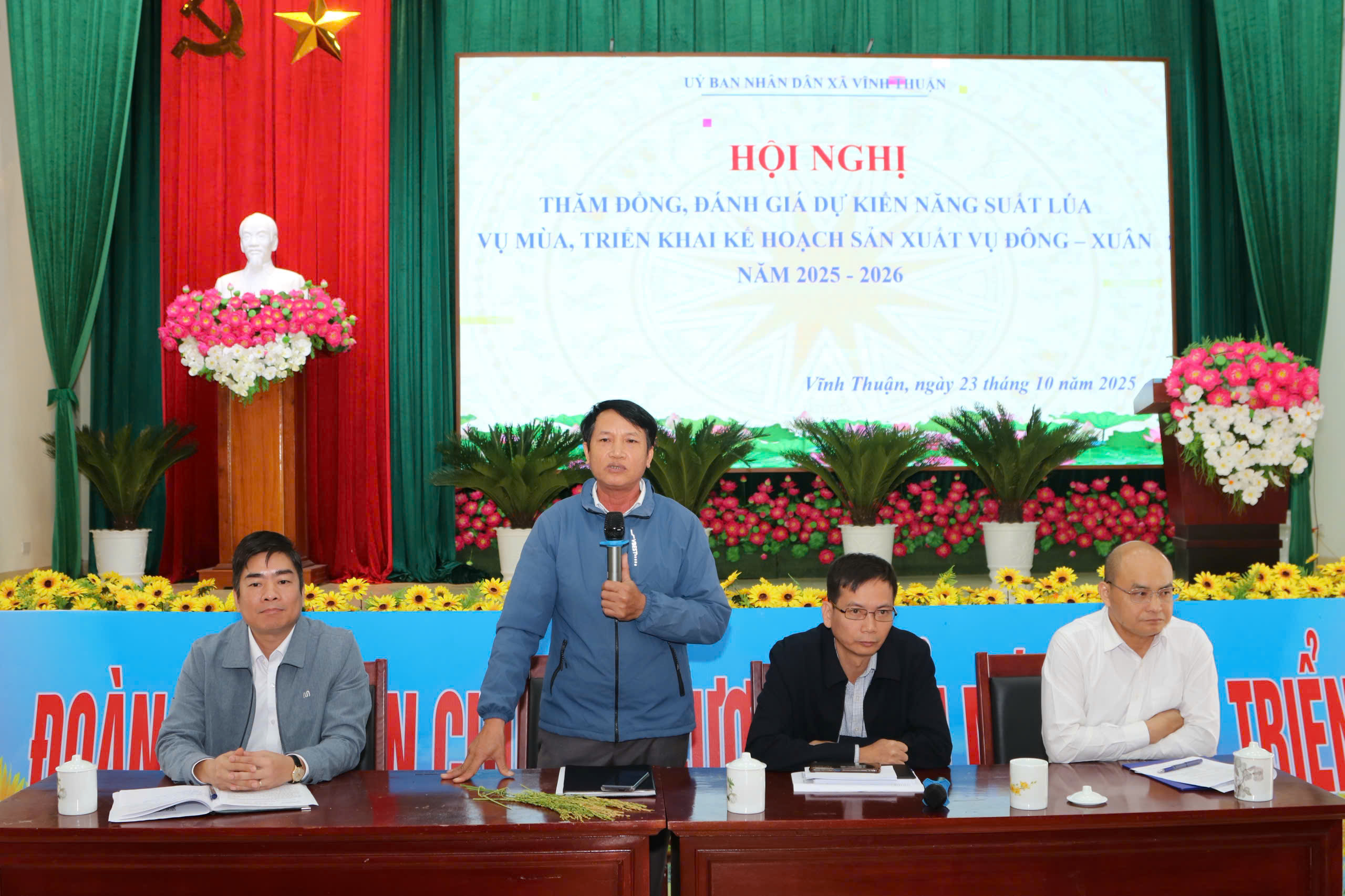 (Vinhthuan.haiphong.gov.vn) - Sáng 23/10, Ủy ban nhân dân xã tổ chức các đoàn thăm đồng đánh giá, dự kiến năng suất lúa vụ Mùa, Kế hoạch sản xuất vụ Đông – Xuân năm 2025-2026.