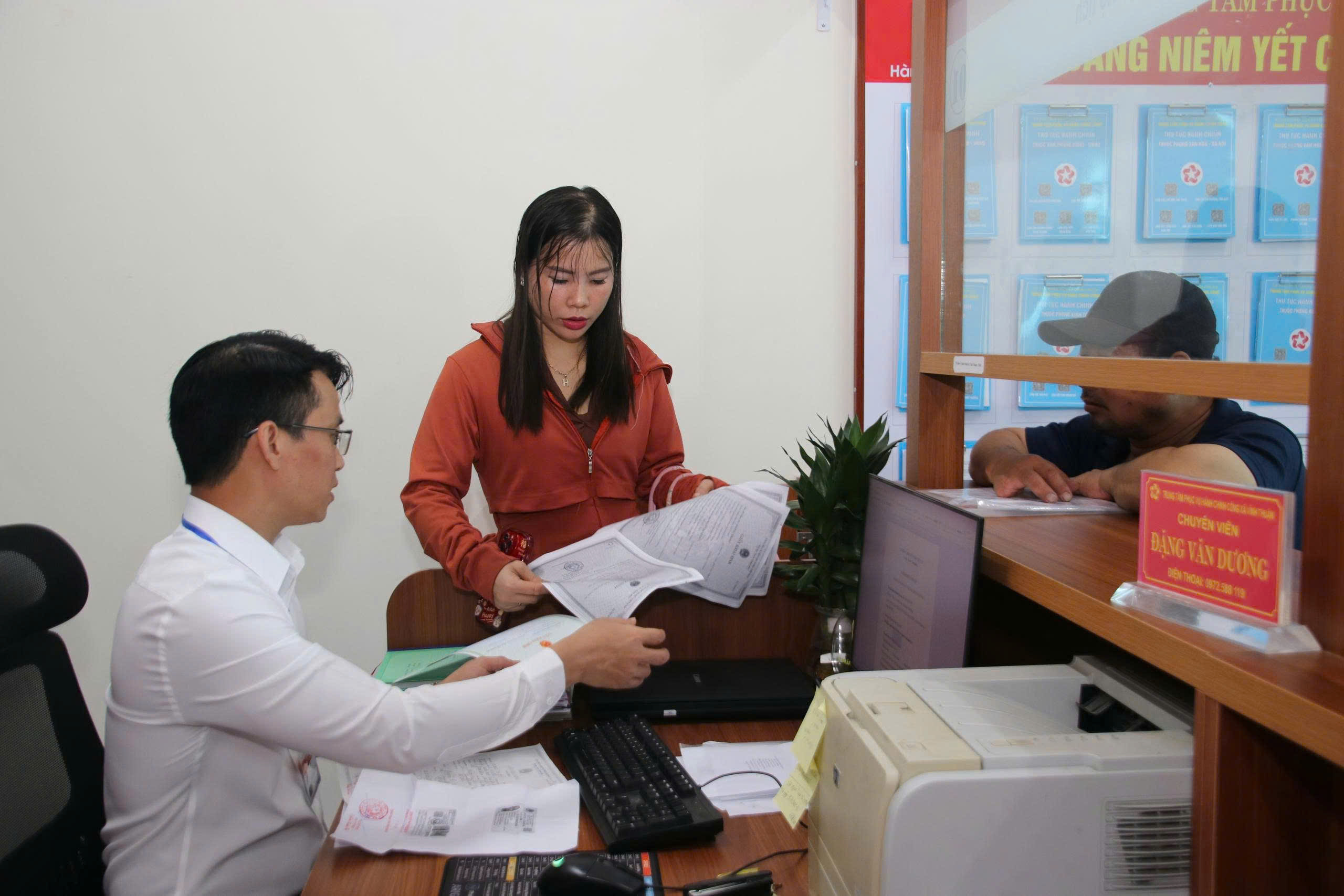 Cán bộ Trung tâm Phục vụ hành chính công xã hướng dẫn người dân Trong thời gian tới, UBND xã Vĩnh Thuận tiếp tục đẩy mạnh cải cách hành chính, thực hiện tốt cơ chế “một cửa”, tạo điều kiện thuận lợi nhất cho tổ chức và công dân khi đến giao dịch, góp phần xây dựng chính quyền thân thiện, gần dân, vì nhân dân phục vụ./.