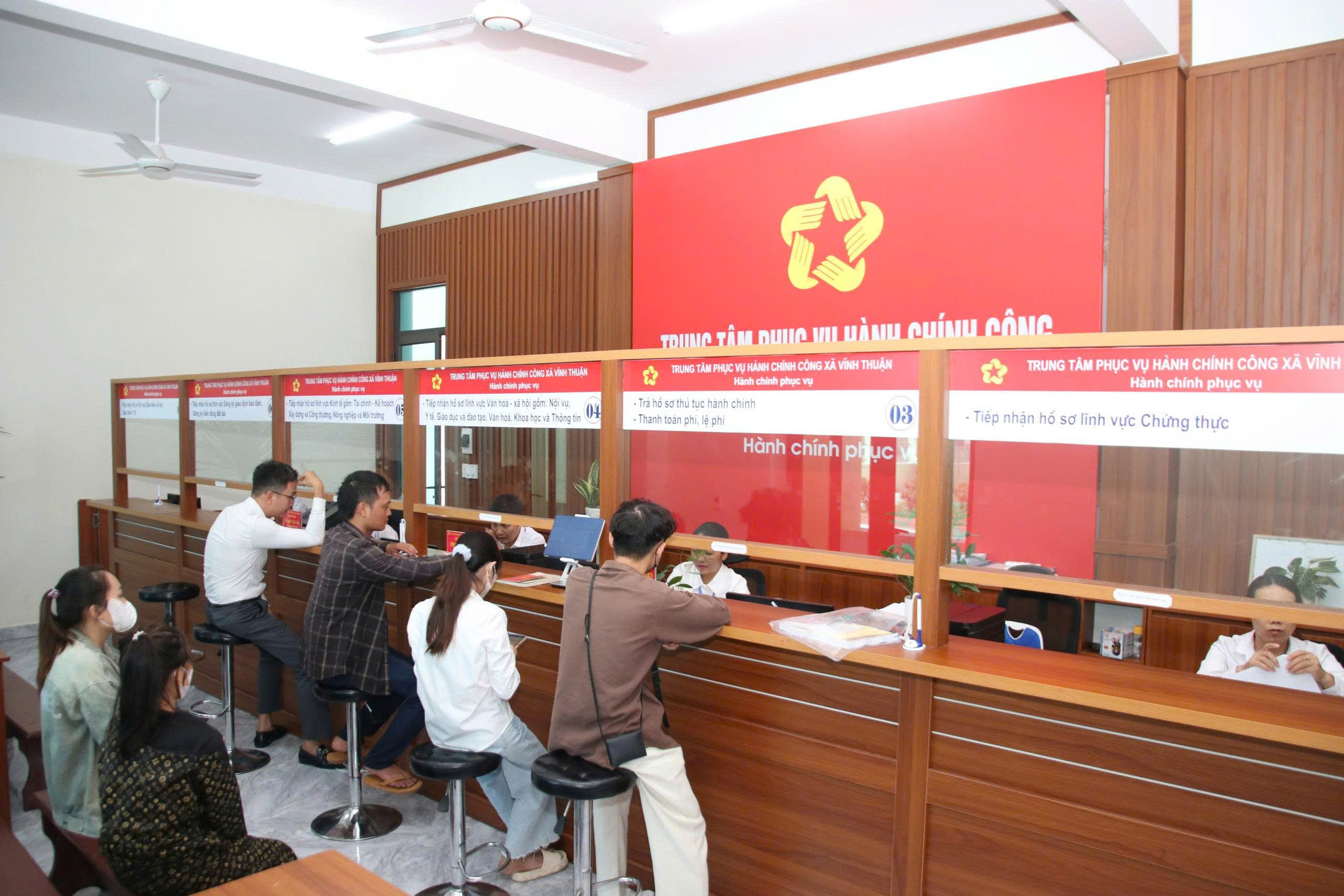 Cán bộ Trung tâm Phục vụ hành chính công xã Vĩnh Thuận hướng dẫn người dânChỉ tính riêng quý I năm 2026, xã Vĩnh Thuận đã tiếp nhận 2.307 hồ sơ, không có hồ sơ tồn đọng; đã giải quyết 2.305 hồ sơ; 100% hồ sơ được giải quyết trước hạn và đúng hạn, không có hồ sơ quá hạn. Tỷ lệ nộp hồ sơ trực tuyến và thanh toán trực tuyến đạt 100%.