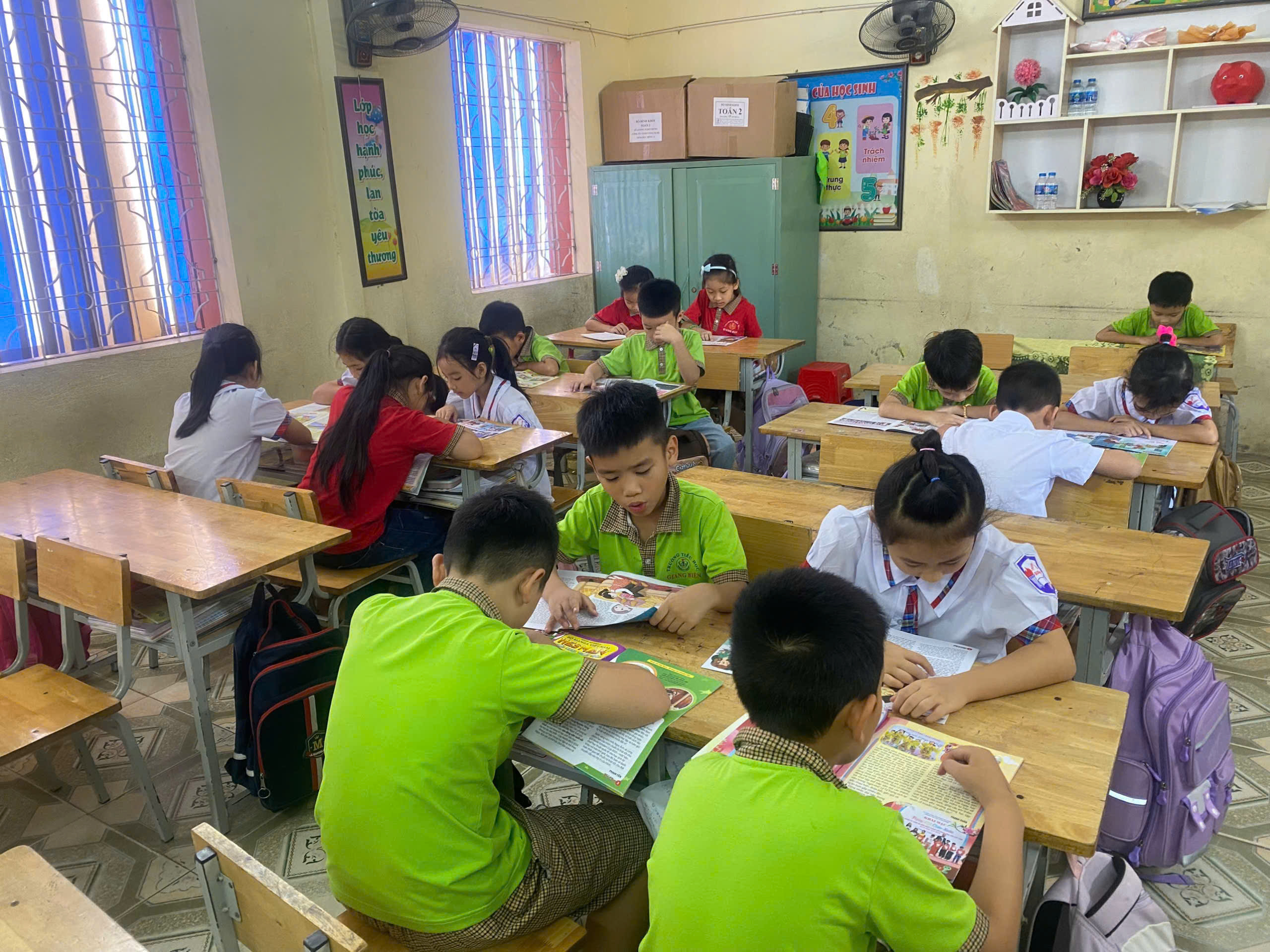 Các em học sinh say sưa đọc sách và trao đổi cùng nhau mỗi giờ ra chơiTrong bối cảnh chuyển đổi số mạnh mẽ hiện nay, dù có nhiều phương tiện tiếp cận thông tin hiện đại, sách vẫn giữ vai trò quan trọng, là nguồn tư liệu đáng tin cậy, giúp con người hiểu sâu sắc hơn về lịch sử, văn hóa, khoa học và đời sống. Đọc sách không chỉ nâng cao dân trí mà còn góp phần hình thành xã hội học tập, cộng đồng văn minh, phát triển bền vững.
