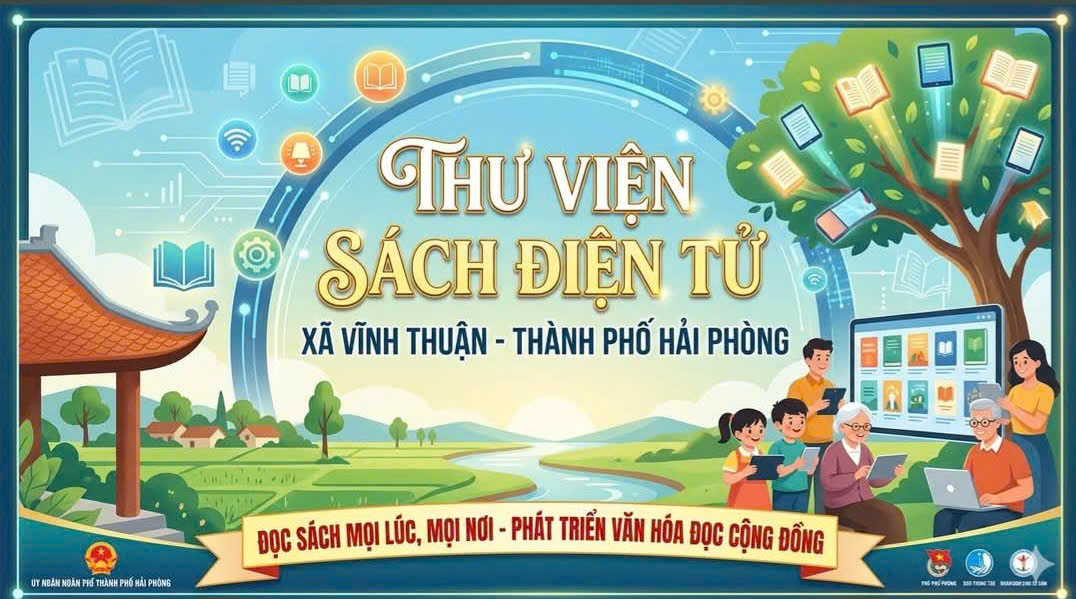 Thư viện sách điện tử trên Cổng thông tin điện tử xãHưởng ứng Ngày Sách và Văn hóa đọc Việt Nam năm 2026, ngày 17/4/2026, xã Vĩnh Thuận chính thức ra mắt Thư viện sách điện tử trên Cổng thông tin điện tử xã tại địa chỉ: https://vinhthuan.haiphong.gov.vn. Đây là bước tiến quan trọng trong việc ứng dụng công nghệ thông tin vào phát triển văn hóa đọc tại địa phương. Thư viện sách điện tử được xây dựng với giao diện thân thiện, dễ truy cập, hệ thống đầu sách được giới thiệu và hướng dẫn trực quan, giúp người dân dễ dàng tiếp cận nguồn tài nguyên tri thức mọi lúc, mọi nơi.