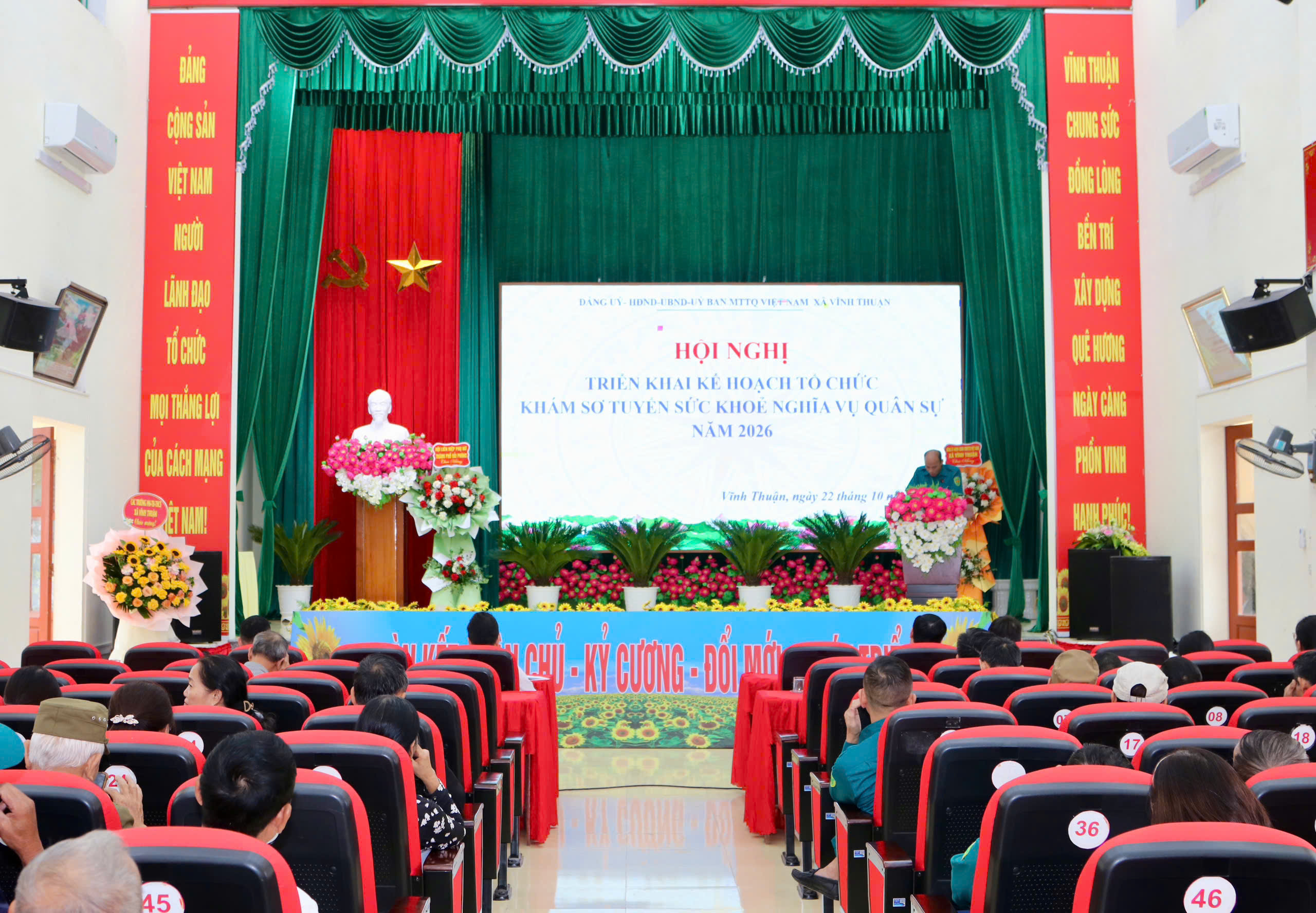 (Vinhthuan.haiphong.gov,vn) - Chiều 22/10, Ủy ban nhân dân xã Vĩnh Thuận tổ chức Hội nghị triển khai kế hoạch khám sơ tuyển sức khỏe nghĩa vụ quân sự năm 2026.