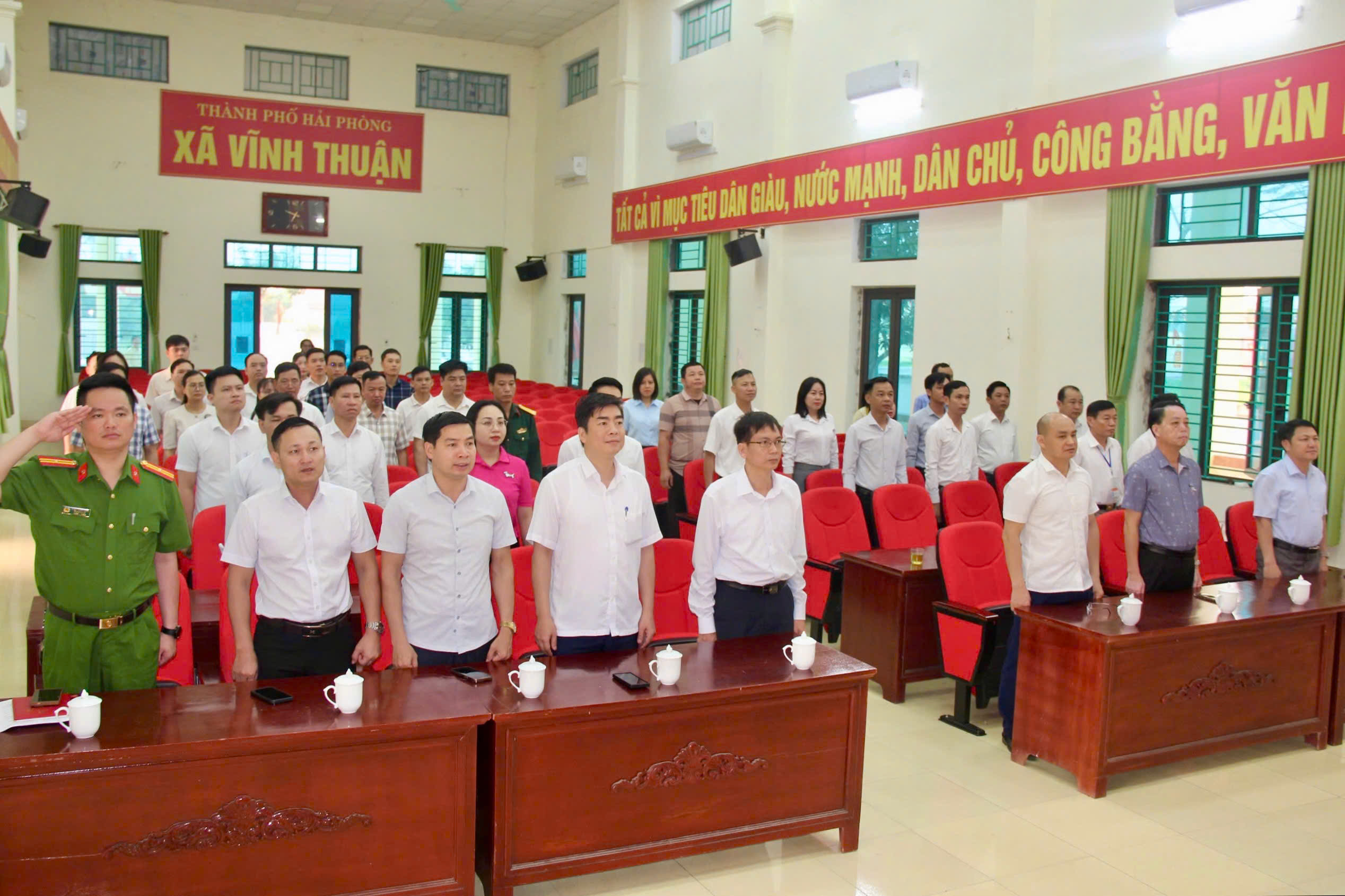 (Vinhthuan.haiphong.gov.vn) - Sáng 6/4/2026, Đảng ủy, Hội đồng nhân dân, Ủy ban nhân dân, Ủy ban Mặt trận Tổ quốc Việt Nam xã Vĩnh Thuận tổ chức Lễ chào cờ và sinh hoạt chính trị dưới cờ tháng 4/2026.