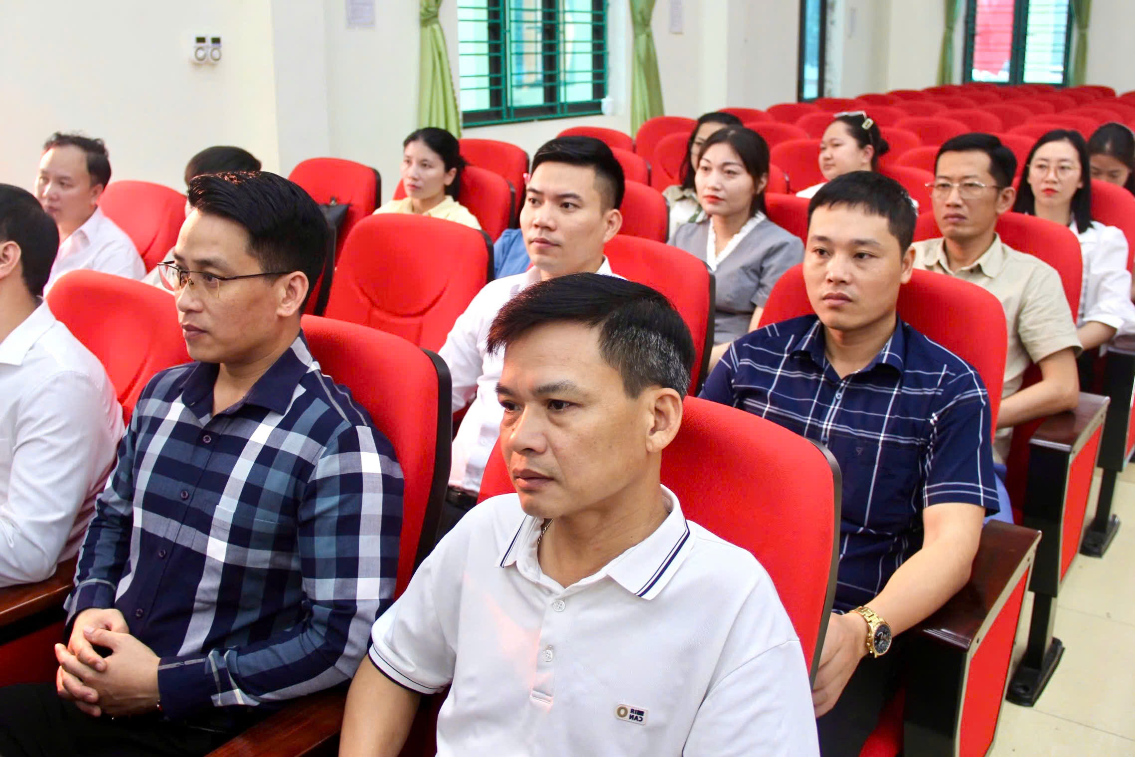 Các bộ, công chức, viên chức các phòng, Ban, đơn vị tham dựLĩnh vực phát triển kinh tế – xã hội tiếp tục duy trì đà tăng trưởng tích cực. Tổng giá trị sản xuất trên địa bàn Quý I/2026 ước đạt 589.498 triệu đồng, đạt 100% kế hoạch, tăng 15% so với cùng kỳ. Nông nghiệp phát triển ổn định, diện tích lúa vụ xuân và cây màu được gieo trồng đúng kế hoạch; chăn nuôi, thủy sản duy trì quy mô hợp lý. Thương mại – dịch vụ và công nghiệp – xây dựng tăng trưởng khá. Công tác thu ngân sách đạt 46,01% kế hoạch năm.