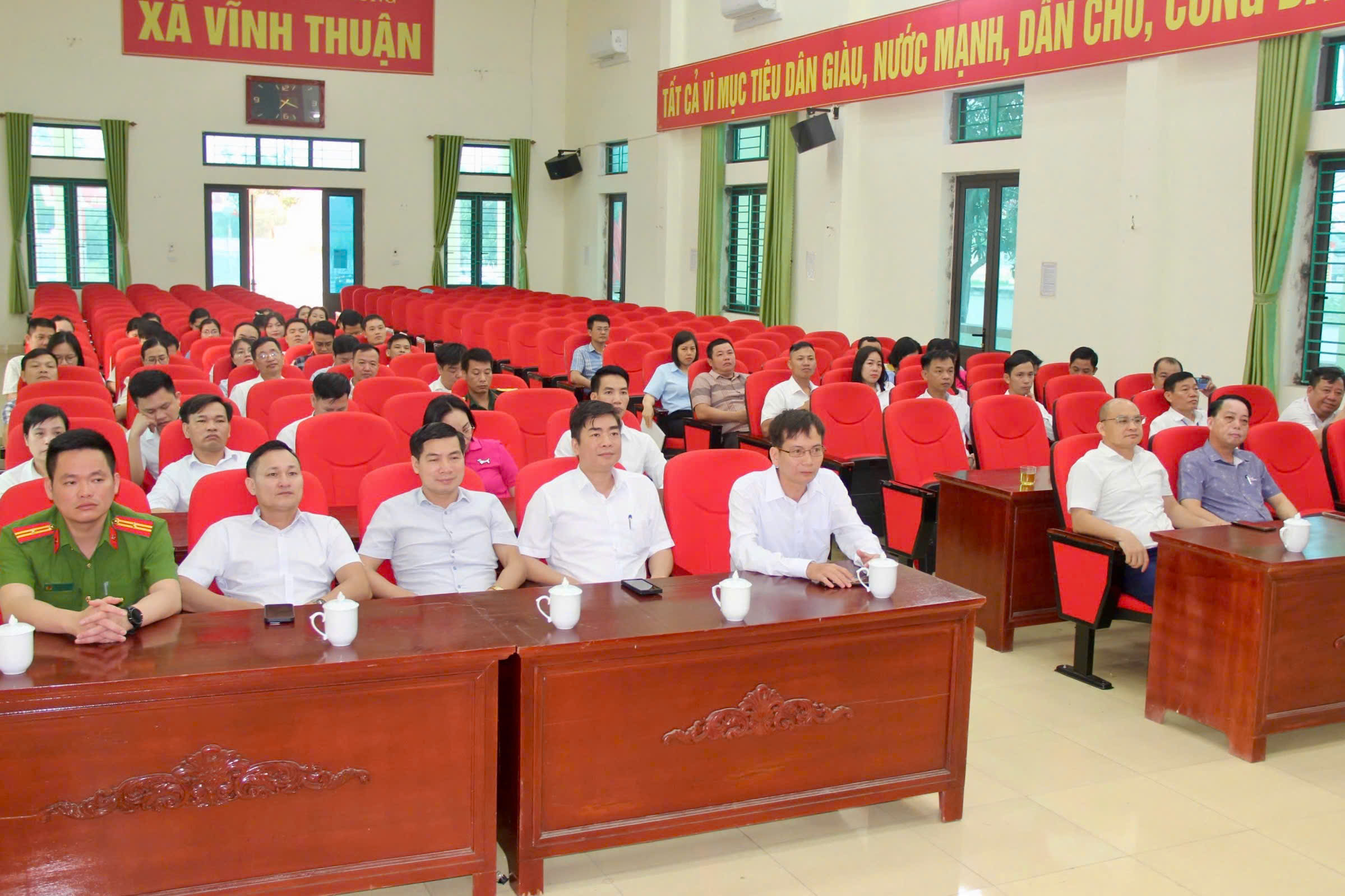 Đồng chí Trần Thanh Minh – Bí thư Đảng ủy, Chủ tịch HĐND xã; đồng chí Đinh Phú Hiếu – Phó Bí thư Đảng ủy, Chủ tịch UBND xã, đồng chí Đoàn Đức Giang, Chủ tịch Ủy ban MTTQ VN xã, Phó Chủ tịch Thường trực UBND xã tham dự